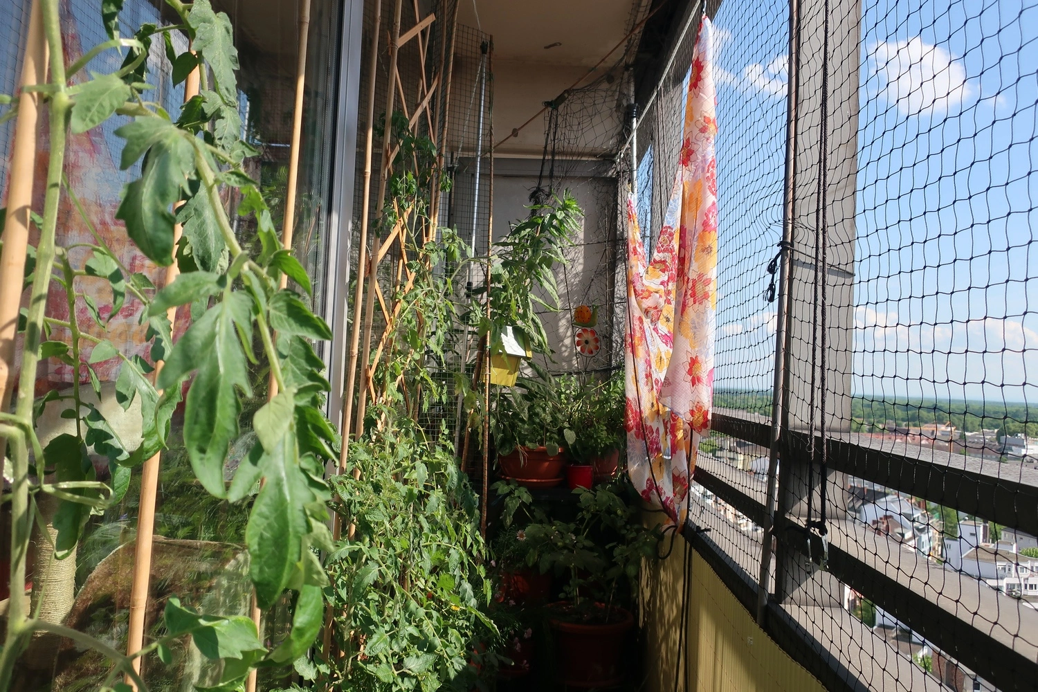 Für die Pflanzen ist es sicherlich Schutz. Heiß bleibt es draußen trotzdem, aber es mindert die Sonneneinstrahlung. Hast du den Stoff ohne Leiter über die Leine werfen können?