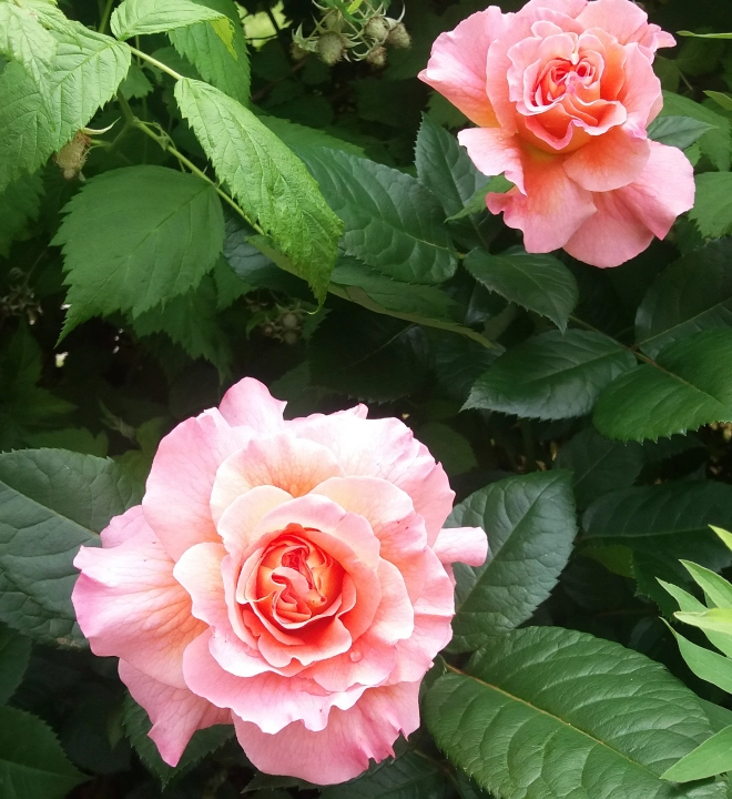 Die Himbeerrose habe ich jetzt etwas zur Seite gezogen und angebunden, damit sie nicht auf den Early Joes liegt.