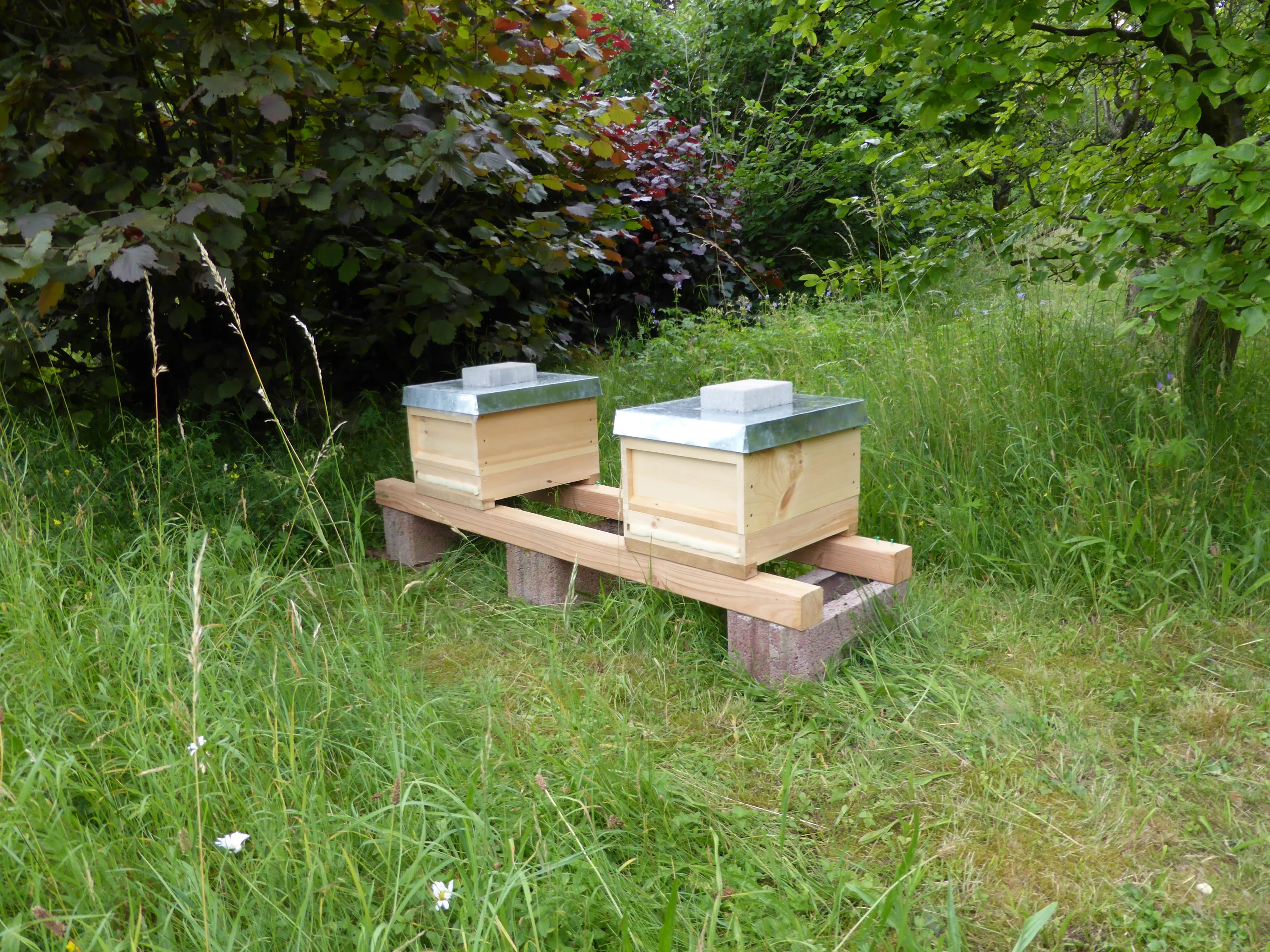Es sind neue Mitbewohner eingezogen. Über zwei Ecken hatte mein Vater erfahren, dass ein Jungimker nach einem biologisch betriebenen Garten suchte, um seine ersten beiden Bienenstöcke aufzustellen. So sind die Bienen nun im Garten eingezogen und der Imker bekam einen Torschlüssel vom Garten. Wir hoffen auf gutes, friedliches Zusammenleben mit den Bienen. Hoffendlich stehen die Bienenstöcke auch nächstes Frühjahr zur Obstblüte noch bei uns.