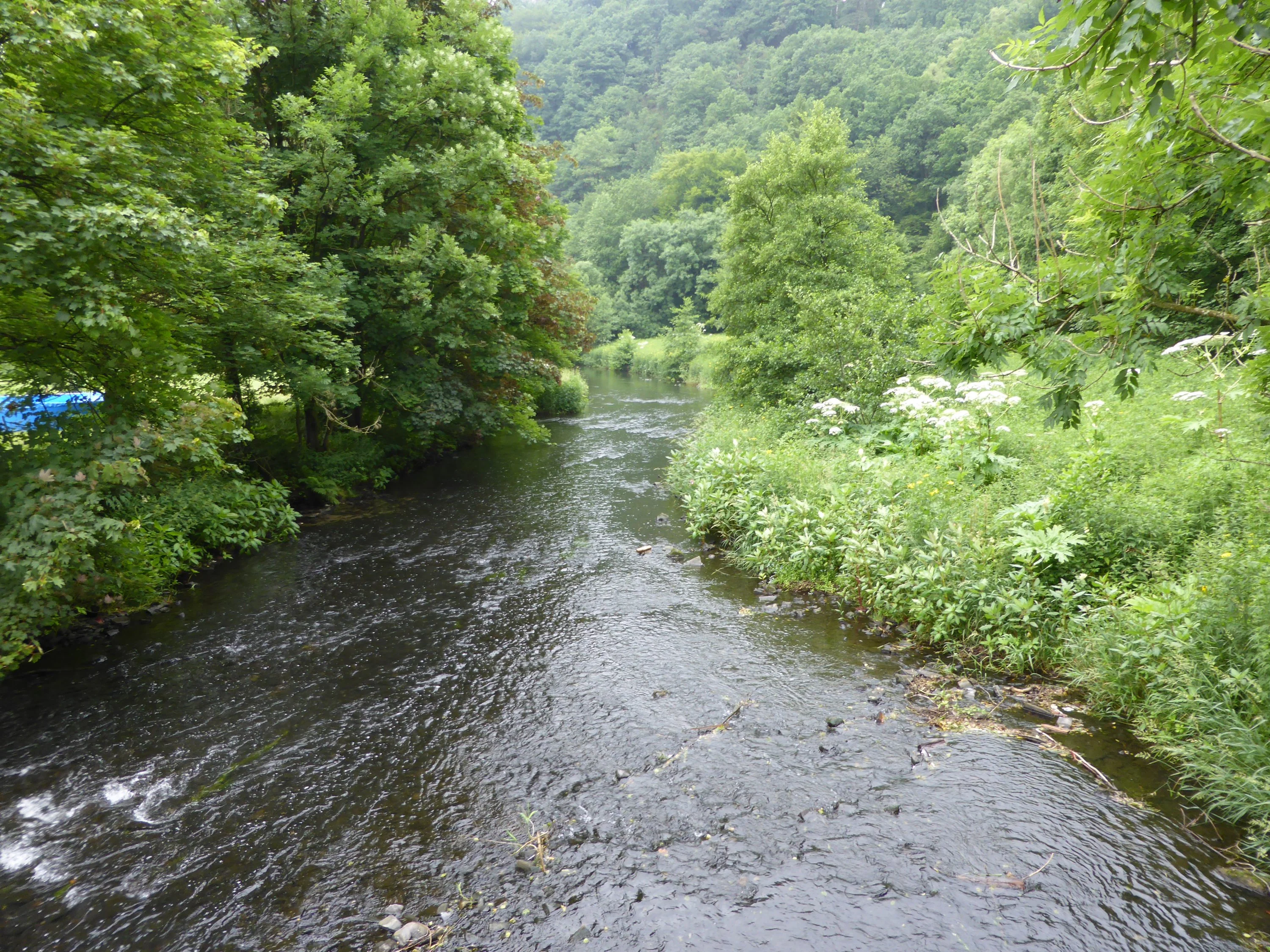 Sonntags haben wir einen Spaziergang in der näheren Umgebung gemacht. Von der Hölzernen Klinke zum Bielsteinkopf mit seiner Aussicht über Wuppertal Beyenburg, dort sind wir dann zur Wupper abgestiegen (sieht auf den Bildern irgendwie längst nicht so steil aus, wie es ist) und nach einer kurzen Strecke entlang der Wupper sind wir dann durch das nächste Tal, das Uhlenbecketal, wieder zur Höhe aufgestiegen.