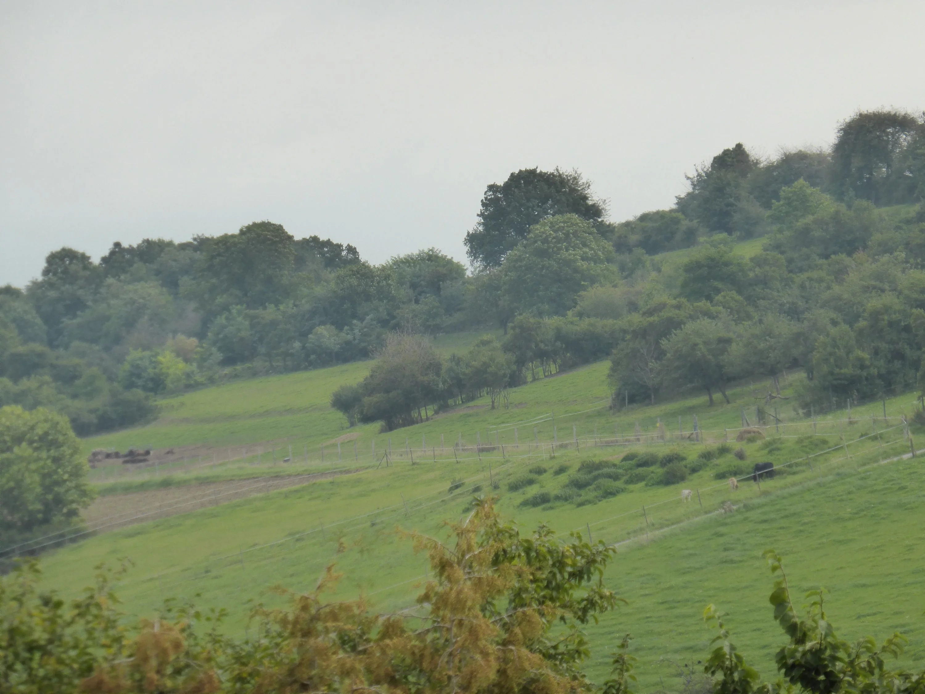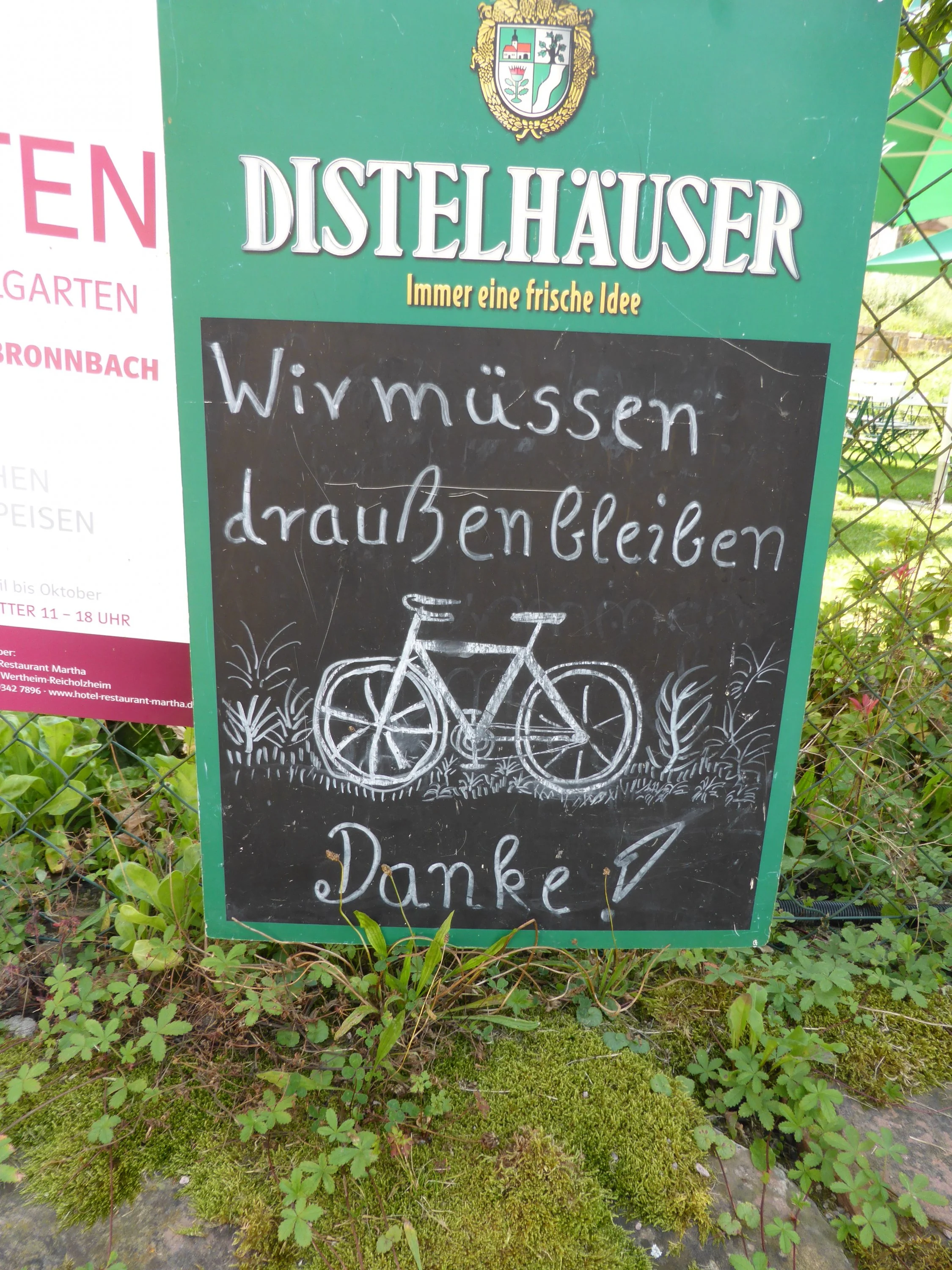 Wir haben uns das Theater nicht angetan und dachten, dass 7km mehr uns schon nicht umhauen würden. Leider haben wir uns ziemlich verfahren, mussten dann über einen Wanderweg die bepackten Räder eher eine Steilwiese hochtragen als schieben und dann über Stock und Stein weiter - so dass wir recht müde in Schrozberg ankamen.
