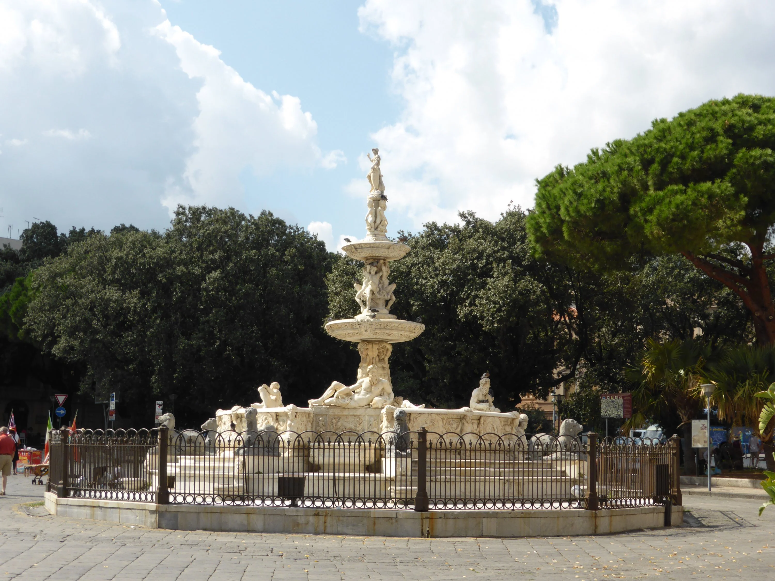 Der kleine Park vorm Palast war auch schön. Wir hatten ja nur wenig Zeit und wollten möglichst viel sehen. Die Straßen in der Altstadt waren ganz erstaunlich sauber und auf dem Ballaro Markt sah man, daß dieses Stück Erde reich an Schätzen, seine Bewohner aber zumeist eher arm sind.