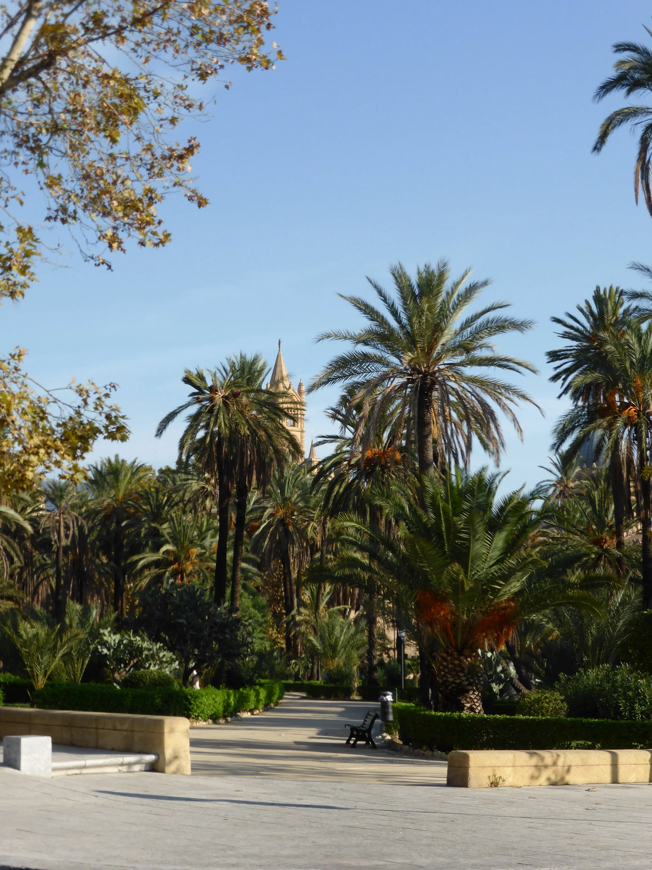 Als wir im Frühjahr durch Palermo liefen, war es schon richtig warm. Im Sommer ist das wirklich nicht zu machen. Ich erinnere die Orangenbäume vor dem Dom.
