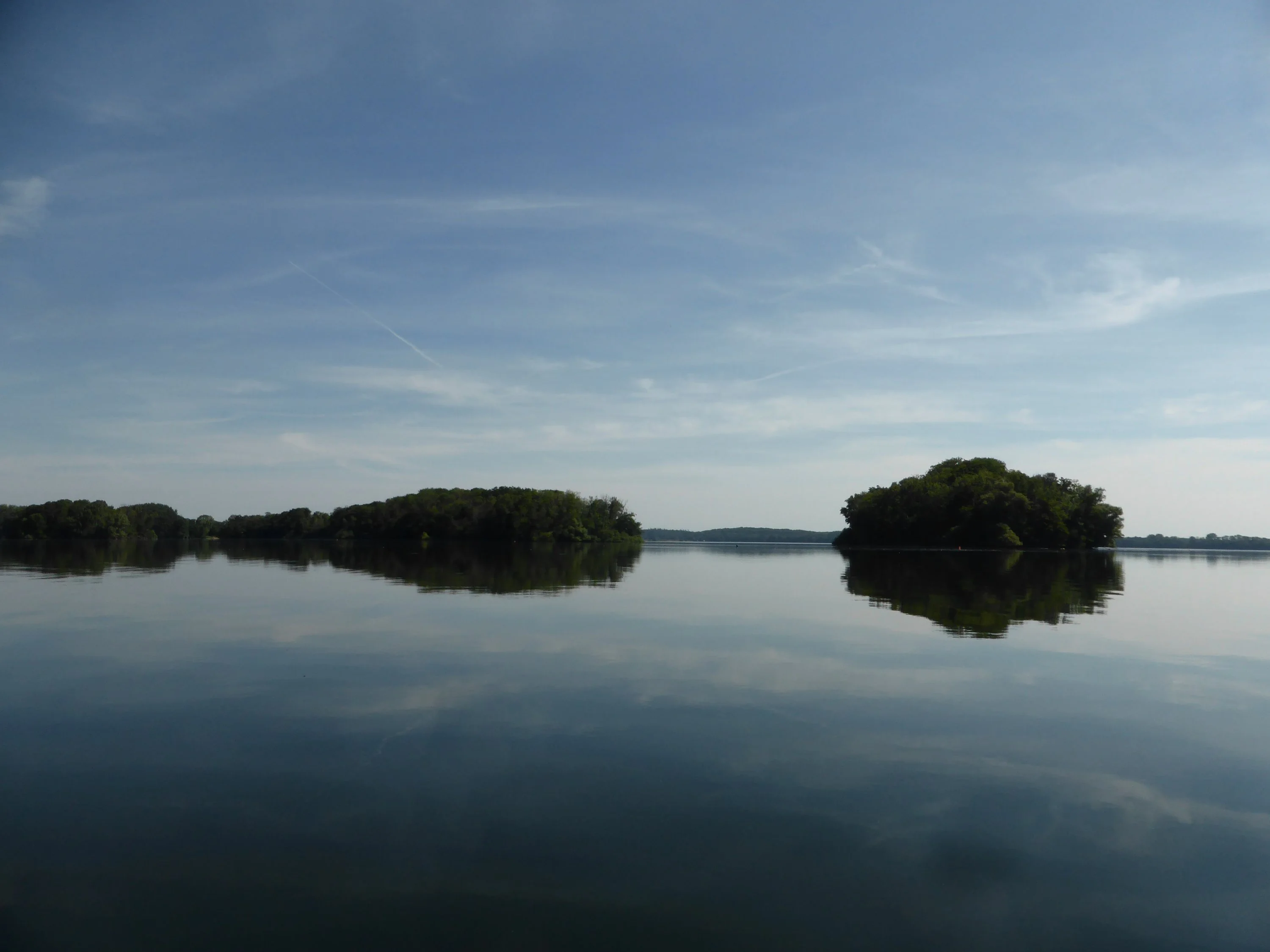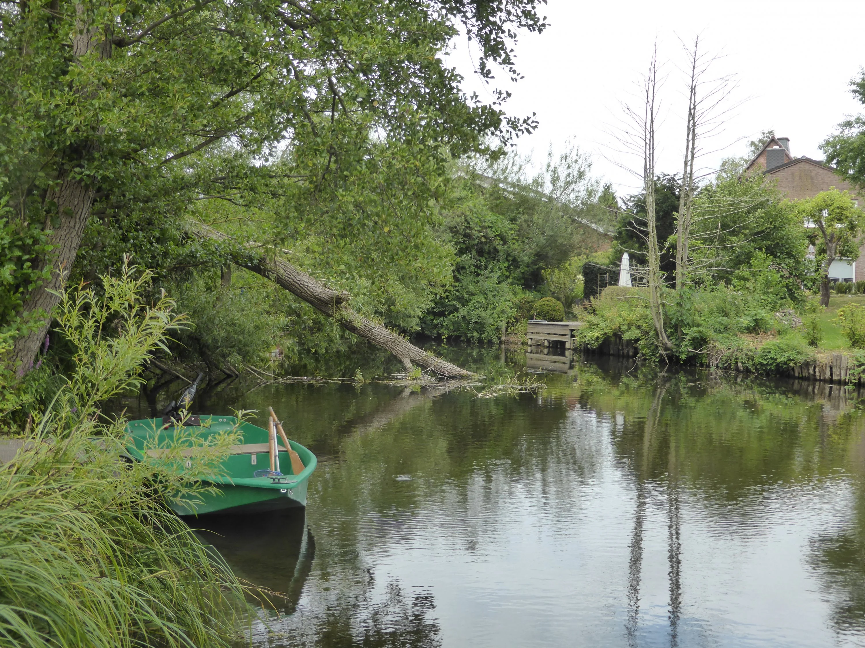 Am nächsten Tag war es noch etwas windig, aber man konnte wieder aufs Wasser. Trotzdem war die Tour nach Norden wieder zum Campingplatz Ruhleben deutlich anstrengend, und so nass bin ich sonst an keinem Tag geworden. Wir haben auf einem Platz für Wasserwanderer Pause gemacht, weil man dieses Mal wirklich an Land musste, wenn man auch nur mal eben seine Wasserflasche aufschrauben wollte.