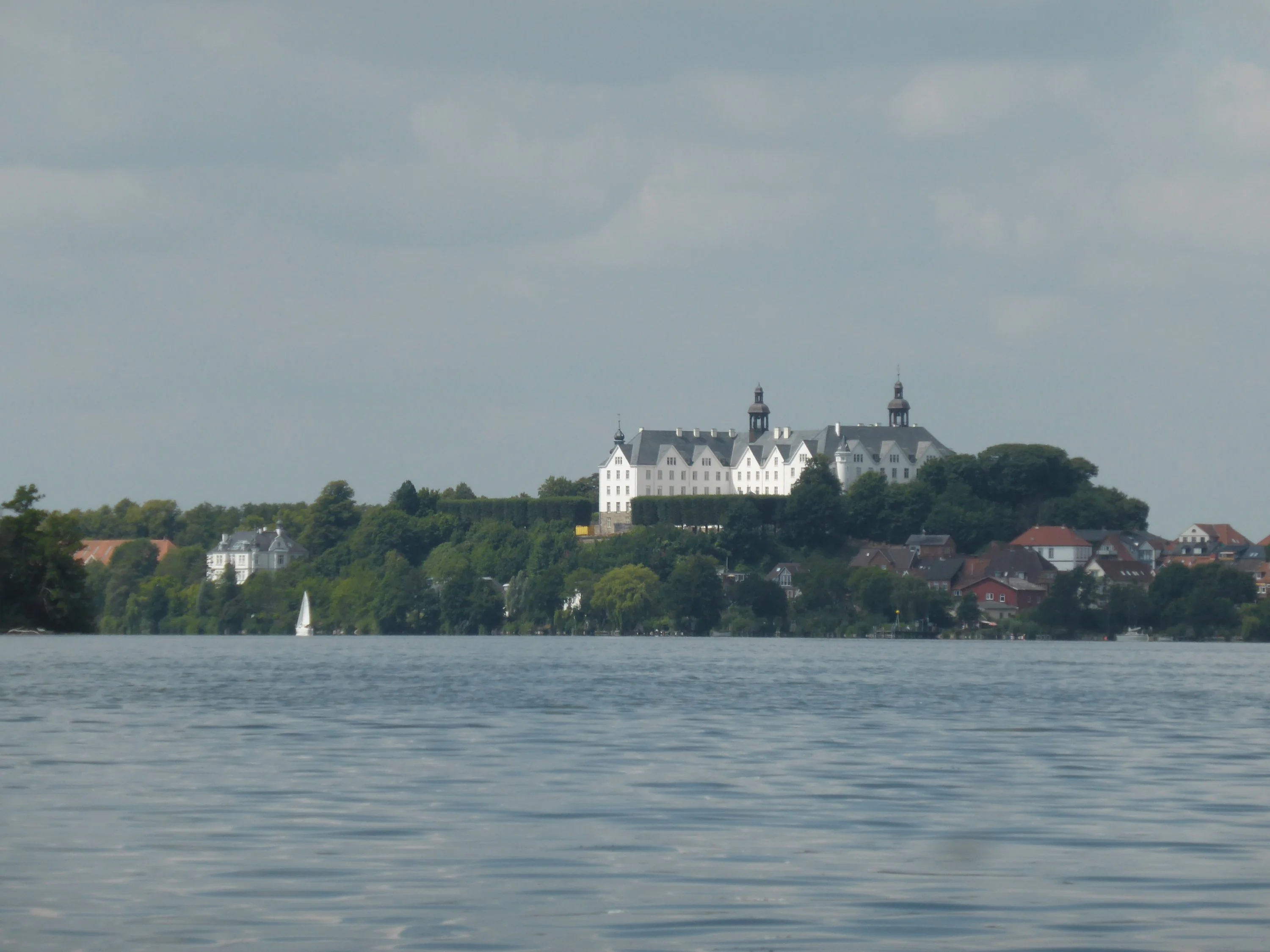 Als wir auf den großen Plöner See kamen, hatten wir den ersten Blick auf das Schloss Plön.