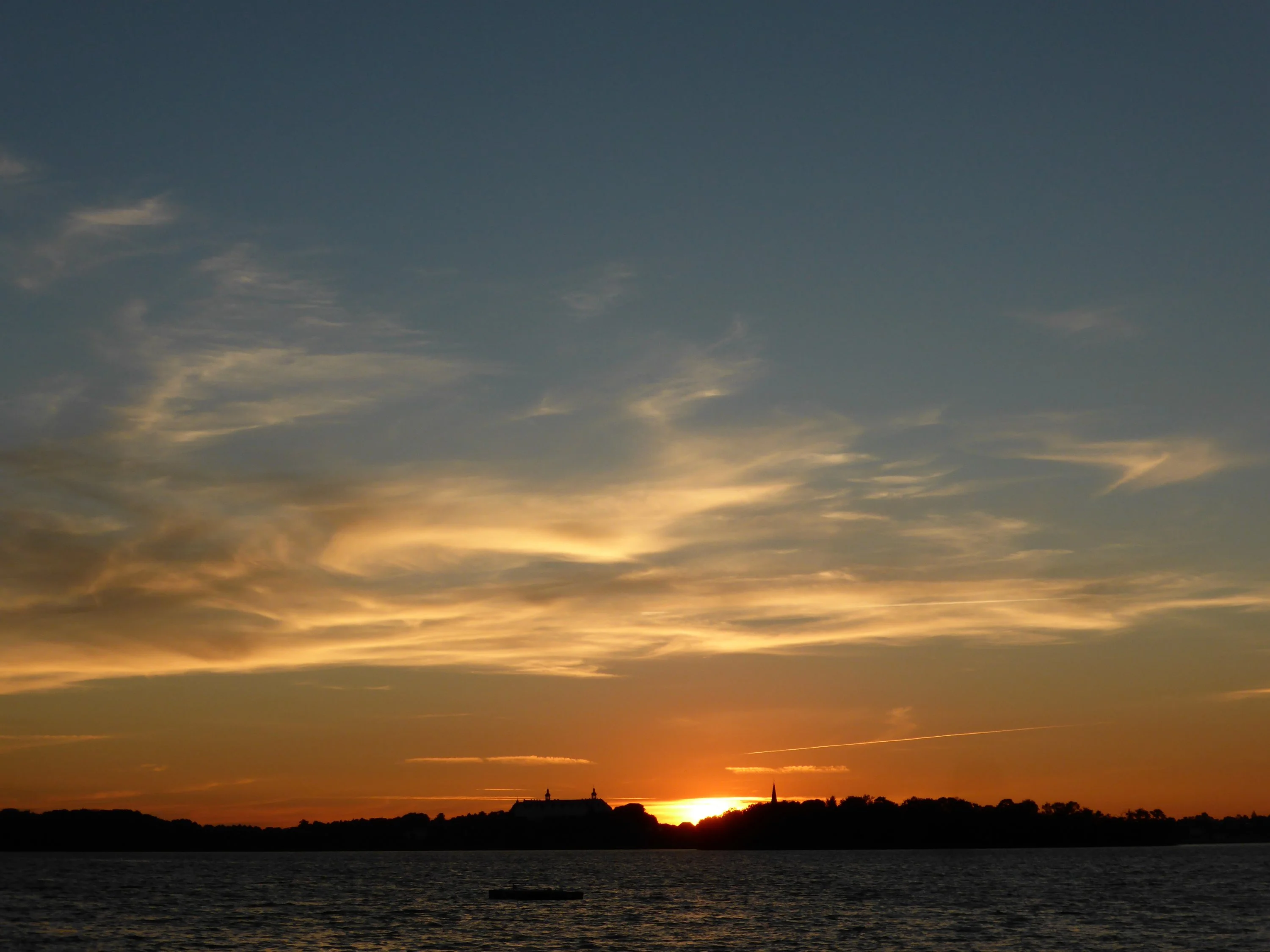 Wir sind aber erst einmal nach Süden zum Campingplatz Ruhleben abgebogen. Die Zeltwiese hatte arg unter der Trockenheit gelitten, aber sonst war der Platz schön und einen Strand, an dem man den Sonnenuntergang bewundern konnte, gab es auch.