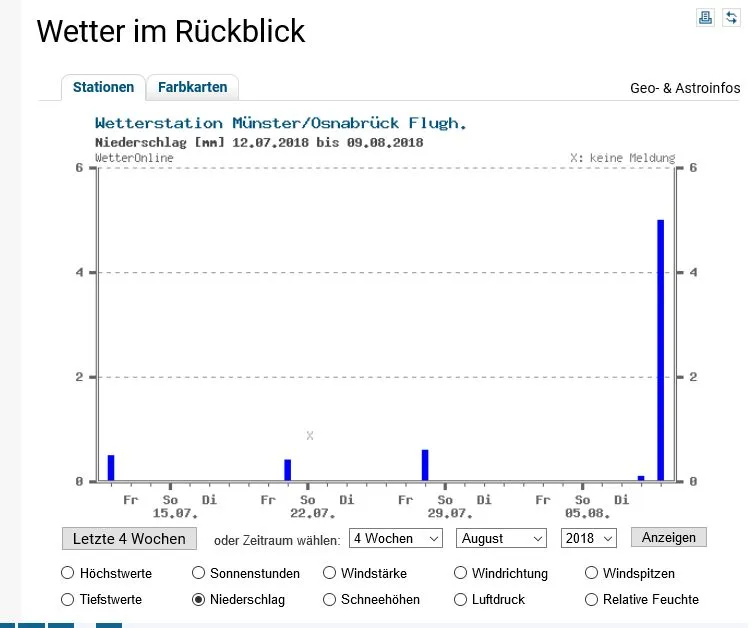 Auch, wenn wir letzte Woche immer mal wieder etwas Regen bekommen haben, so ist es noch lange nicht wieder so weit, dass der Boden gründlich nass wäre.