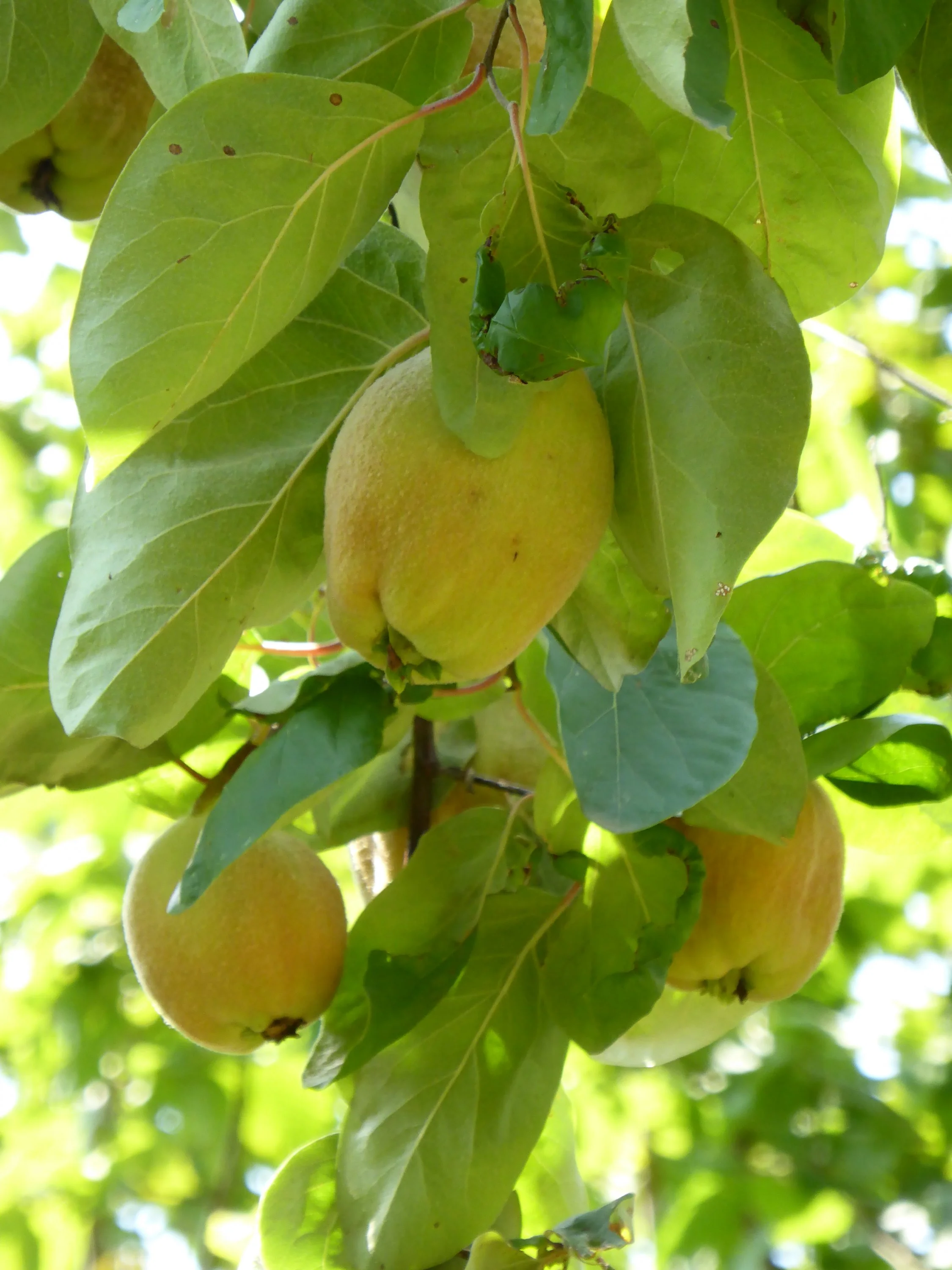 Die Quitte hängt absolut voll und hat bisher auch noch keine Früchte abgeworfen. Sie gehört aber auch zu den bevorzugten Pflanzen, die hin und wieder etwas Wasser bekommen haben.