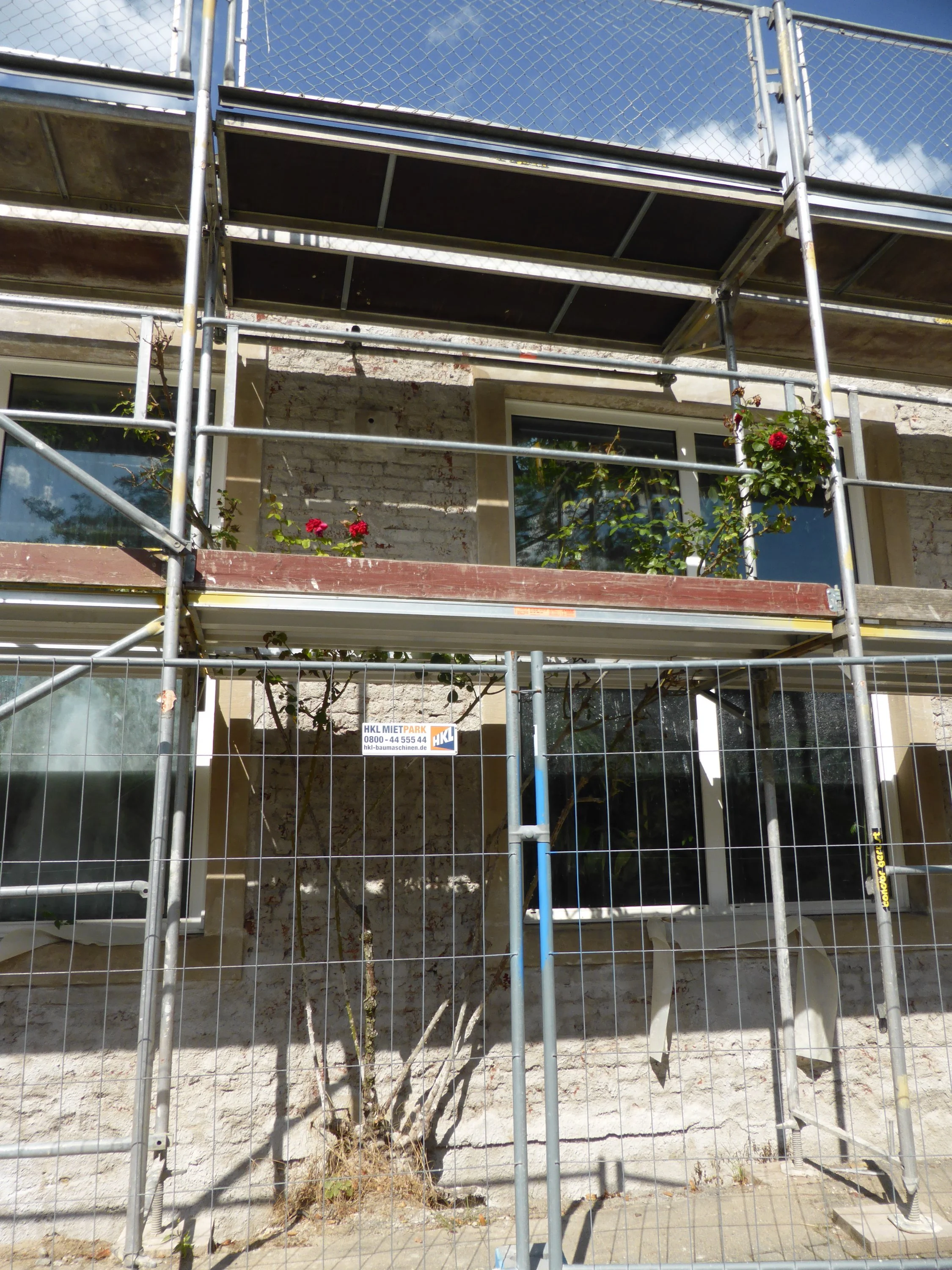 Mein Vater hat die Regenrinnen an den Hütten gereinigt, so soll alles fallende Wasser wenigstens wirklich in den Tonnen landen. Das größte Regenfass hat als Überlauf einen Schlauch, der bis runter in den Teich führt. Wenn es also mal richtig regnet, dann speist auch das große Hüttendach den Teich und sollte ihn so etwas schneller wieder füllen.