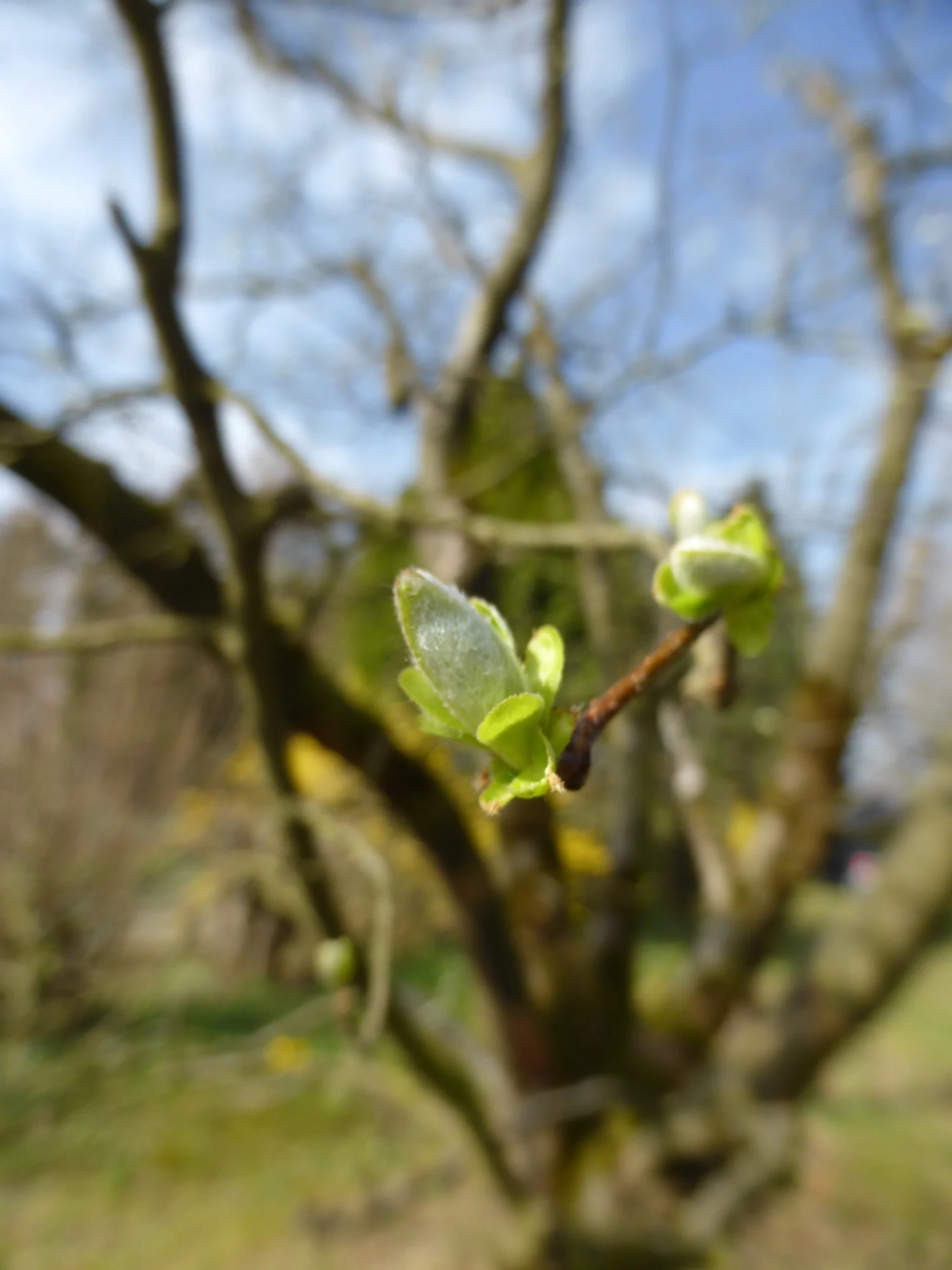 Ansonsten ist der Frühling da. Veilchen blühen, Primeln und Narzissen, Bärlauch konnte ich schon ernten, die Johannisbeeren treiben aus, die Stachelbeere blüht schon. Die Quitte treibt auch schon aus, jetzt heißt es wieder Bangen, dass sie nicht zu früh blüht, sonders erst, wenn es keinen Frost mehr gibt und es so sonnig ist, dass die unter ihr wohnenden Bienen auch alle unterwegs sind. Für uns Menschen war es schön, aber die Bienen flogen auch am Sonntag eher mäßig.