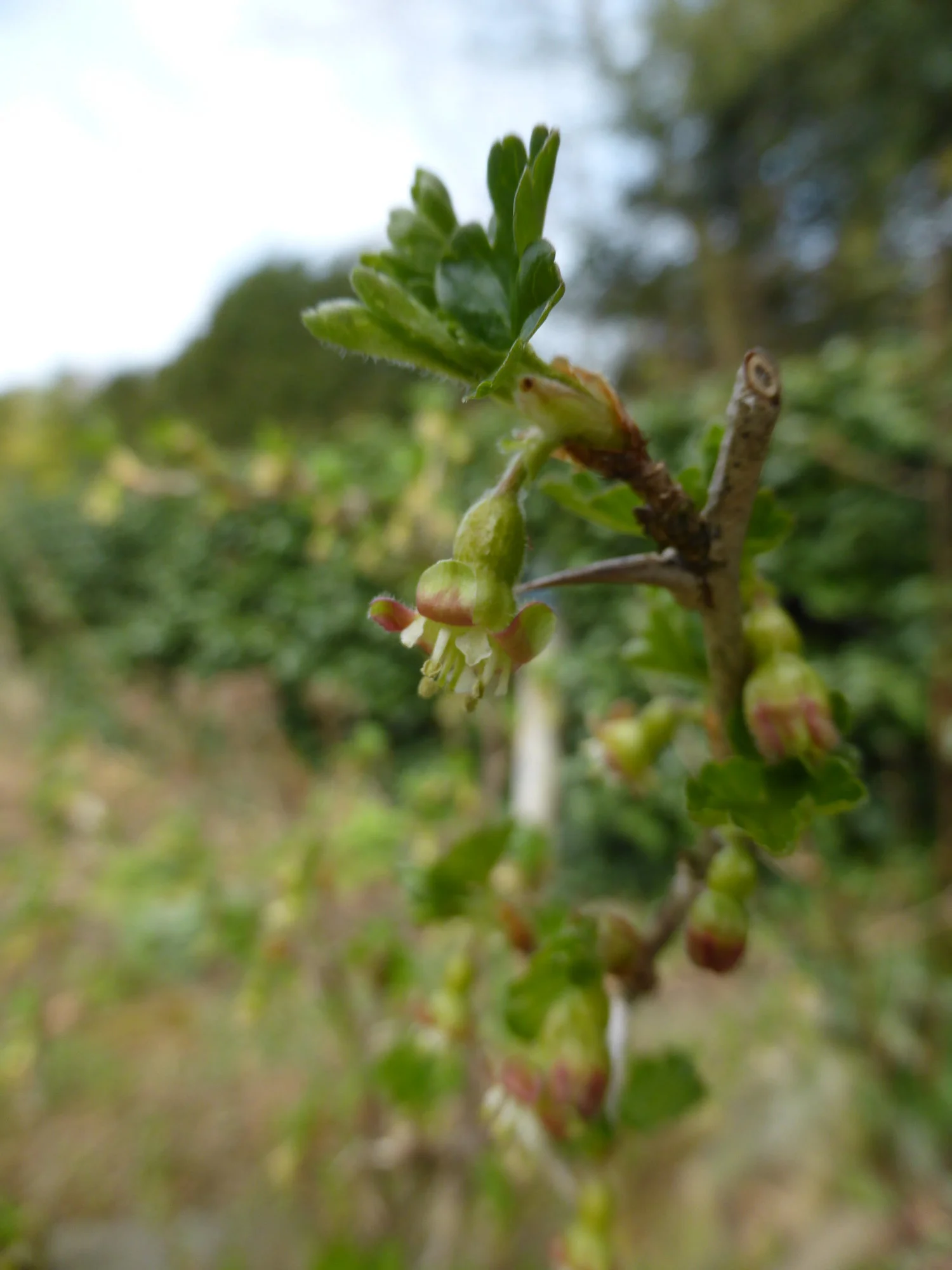 Vor drei Jahren hatte mein Vater einen Stecken der roten Johannisbeere in die Wiese gesteckt und vergessen. Letztes Jahr trug das so entstandene Sträuchlein wunderbar dicke und leckere Beeren. In diesem Winter mochte wohl irgendwer die Rinde des armen Sträuchleins. Ob es noch austreiben wird, ist fraglich.