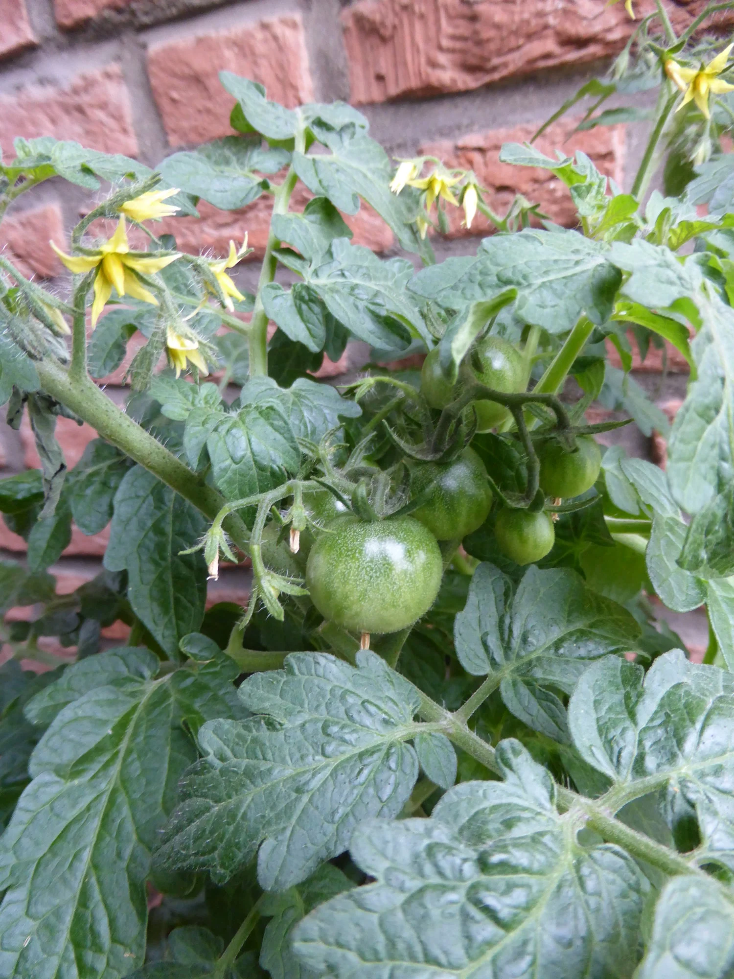 Damit bin ich einmal rum. Ich mache jeden Morgen die Runde, schau nach dem Rechten, schüttle Tomatenblüten und geize aus, wo nötig. Ein schöner Einstieg in den Tag.