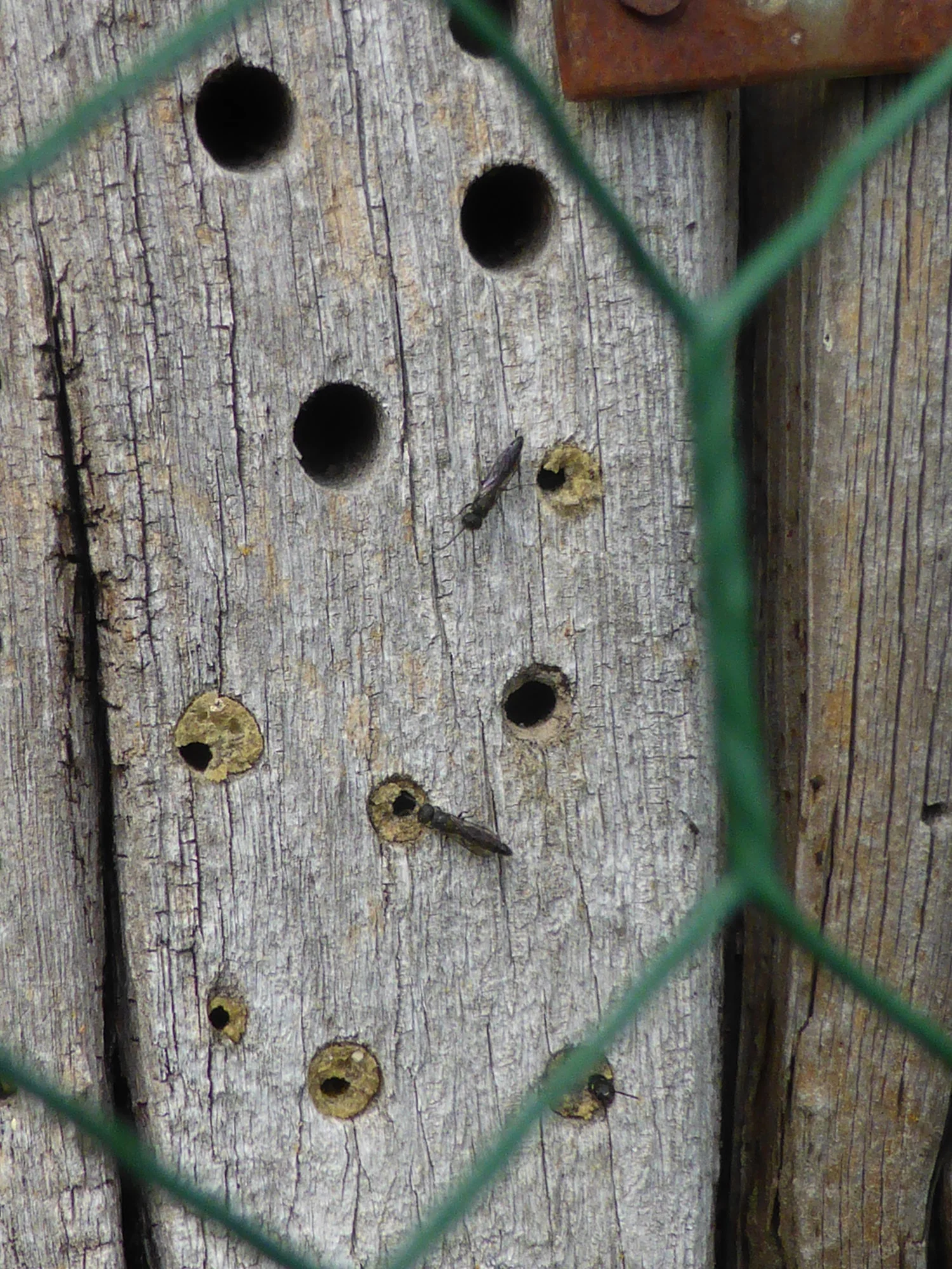 Die Einzelhölzer sind schon älter, werden langsam morsch und der Specht hat wohl auch schon dran gehackt. Aber es werden immer noch Löcher besiedelt.