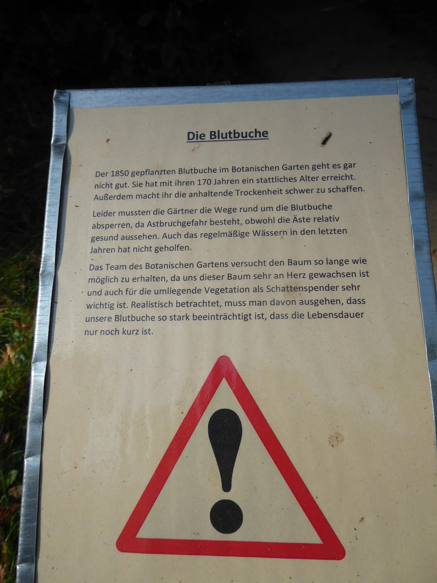 Ja, Rosabel, die riesige Blutbuche, die ich einfach nicht komplett aufs Foto bekomme. Nach dem Sturm Kyrill, als ja die meisten Bäume auf dem Schlossplatz gefallen sind und auch der botanische Garten einige Wochen gesperrt war, müssen so viele Fragen bei den Gärtnern angekommen sein, dass irgendwann in der Zeitung veröffendlicht wurde, die Münsteraner sollten sich keine Sorgen machen, der Blutbuche sei nichts geschehen. So beliebt und bekannt ist der Baum bei der örtlichen Bevölkerung.