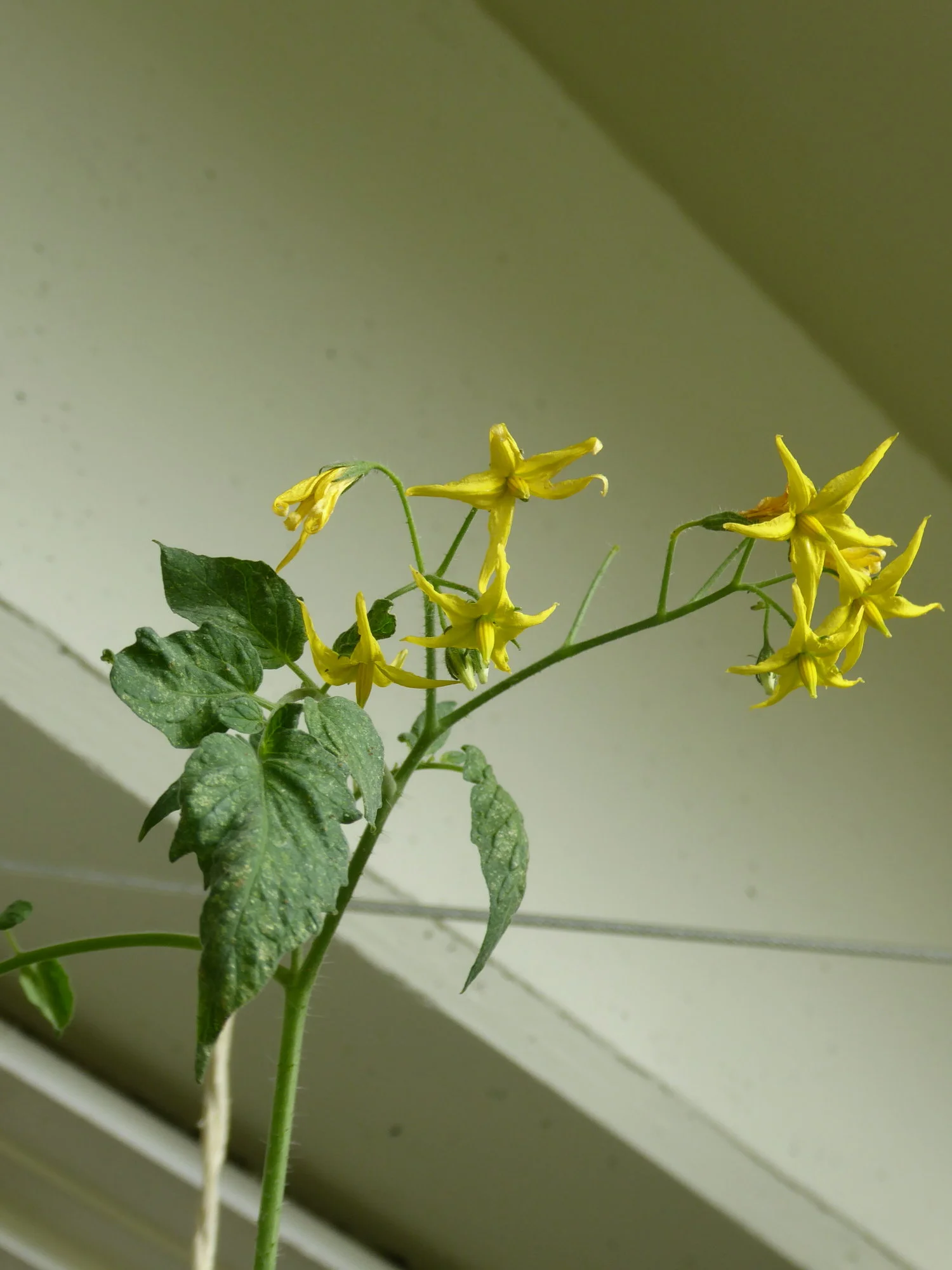 Die Rote Chinesische Coctailtomate hat noch weniger Laub, fängt aber jetzt auch wieder an zu blühen. Noch mag ich sie nicht ziehen.