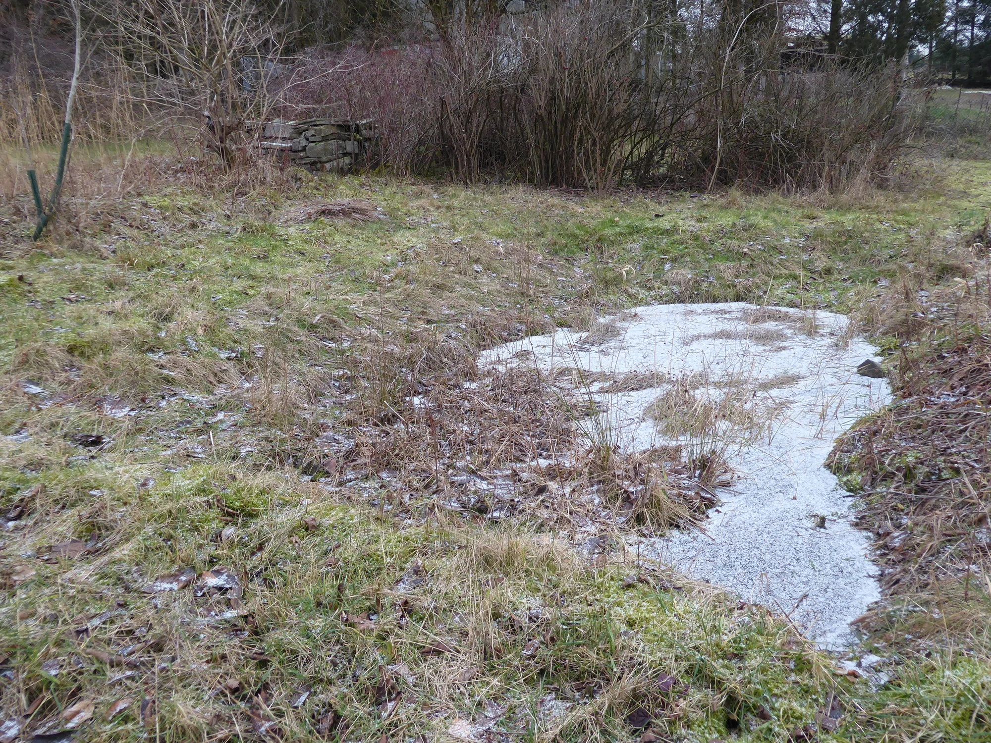 Am Nachmittag sind wir noch ein bischen im Wald gewesen. Die Wege waren aber noch nicht ausreichend gefrohren, wir mussten bei der Bachüberquerung drehen. Hinter der Brücke sorgt der Bach für einen tiefgründigen Schlamm.