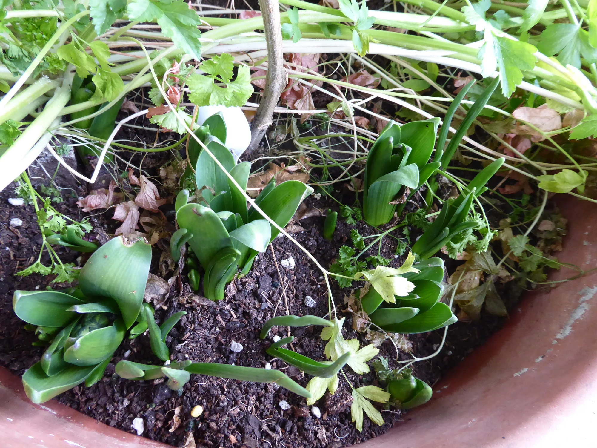 Die Hyazinthen sprießen im Schutz der Petersilie und die Schachbrettblumen kommen auch: