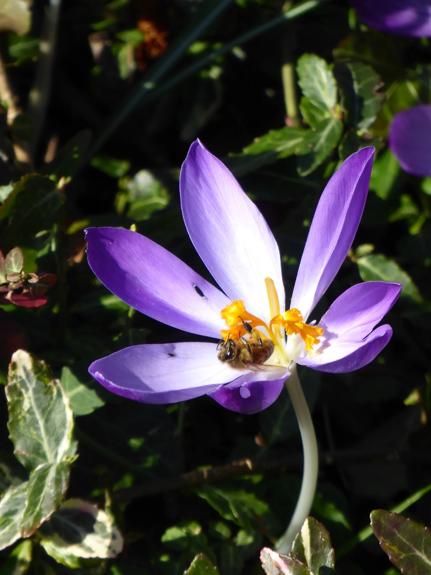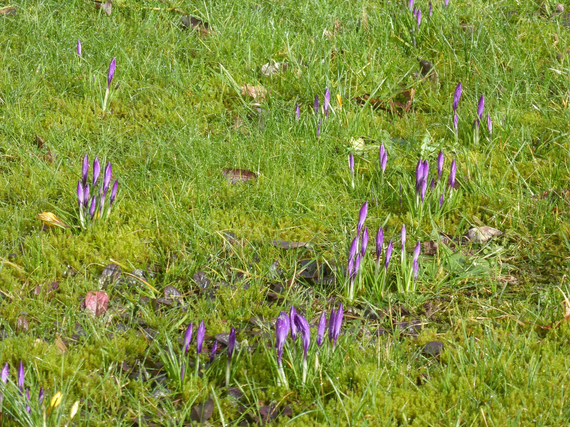 Im Hausgarten blüht es natürlich auch, dort habe ich sogar das erste blühende Lungenkraut gefunden. Einen Blick zu den Nachbarn habe ich mir gestattet, die Krokuswiese ist dort zu schön.