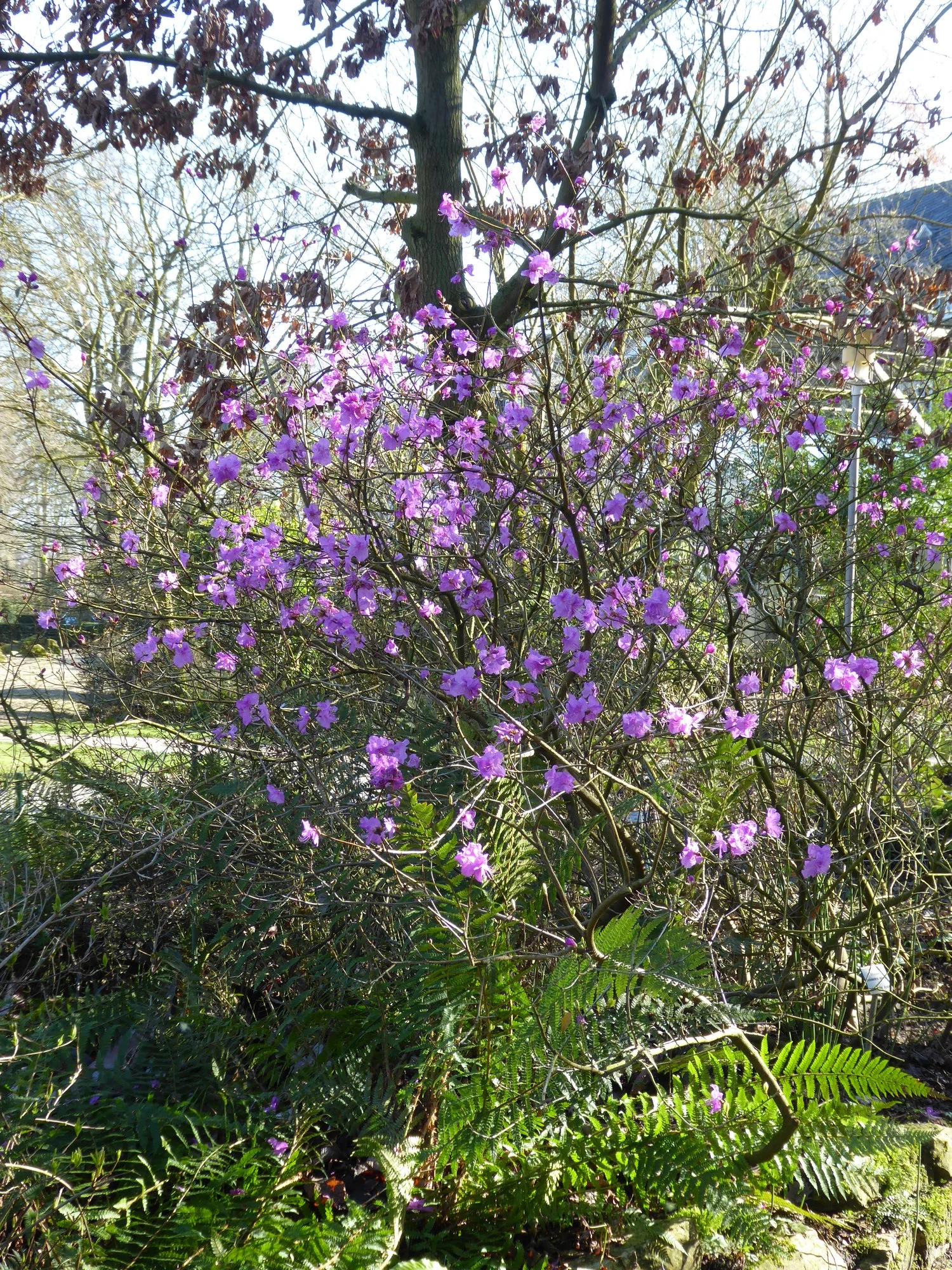 Schneeglöckchen, Märzenbecher und Sommerknotenblume blühen paralell. Die Dahurische Azalee blüht. Leider war der obere Teil mit den Rhododendren abgesperrt, da steht auch immer noch eine ganz frühe Azaleensorte, aber da konnte ich nicht schauen, wie weit sie ist.