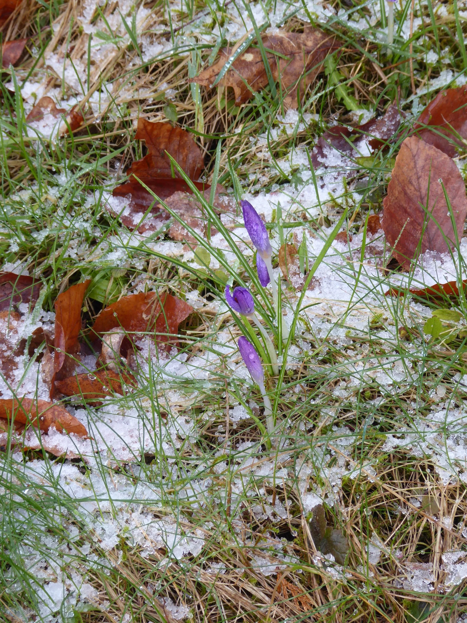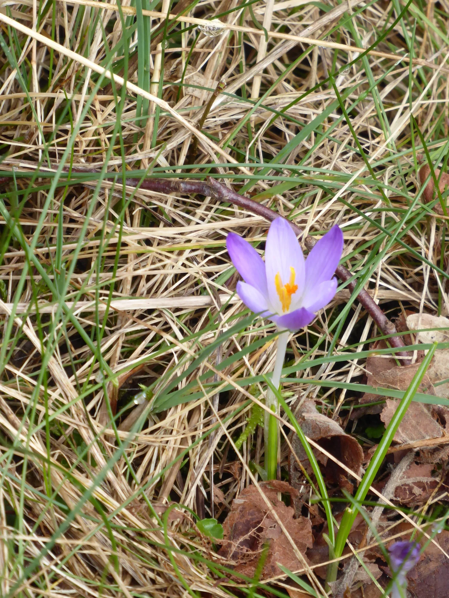 Im Vorgarten blühen die Krokusse und die kleinen Alpenveilchen, Taglilien und Pfingstrose treiben aus.