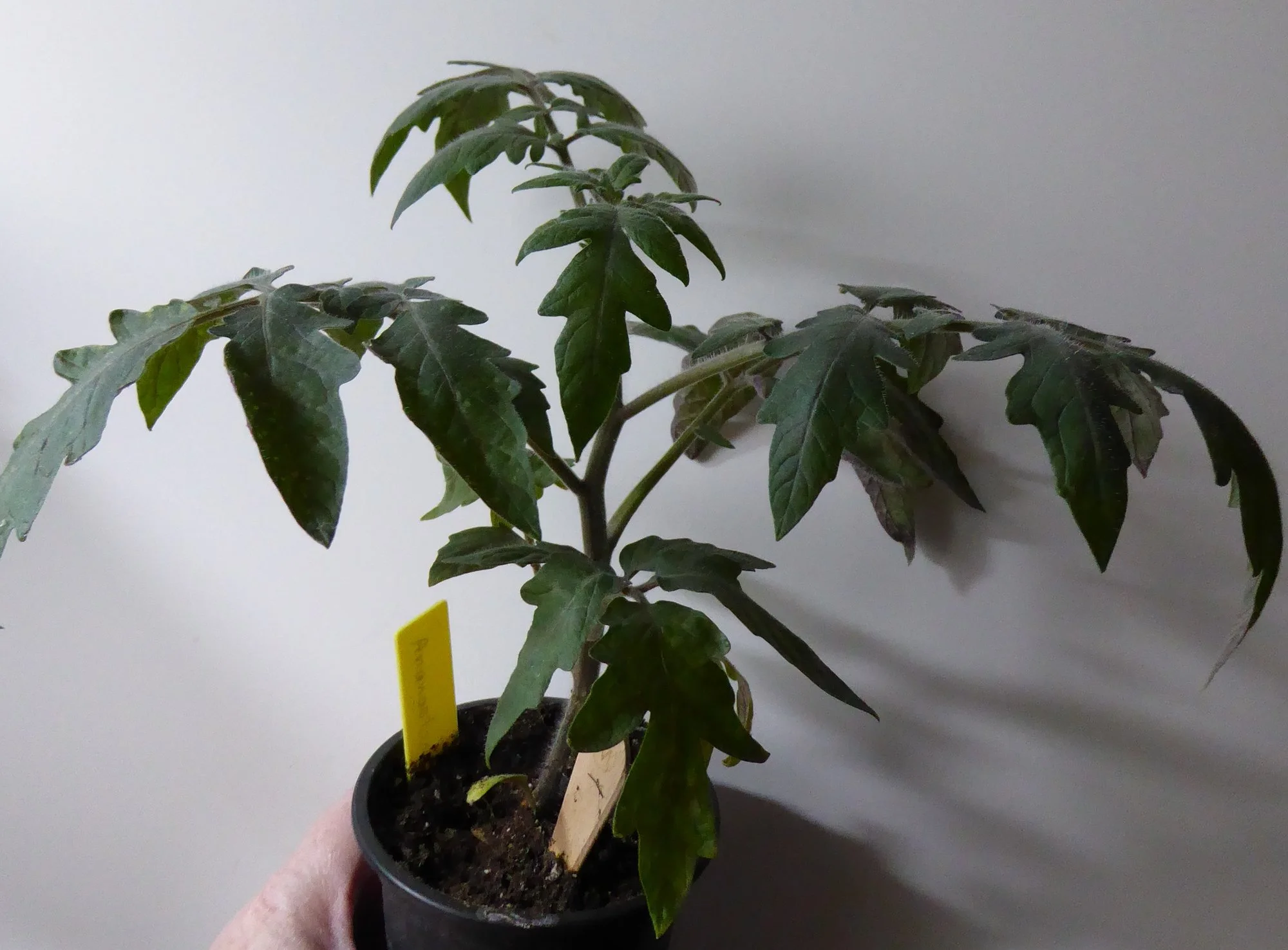 Die Ananastomate wächst kräftig, vielleicht ist nach Ostern schon die nächste Topfgröße fällig. Gleiches gilt für Tubis Streifenzipfel.