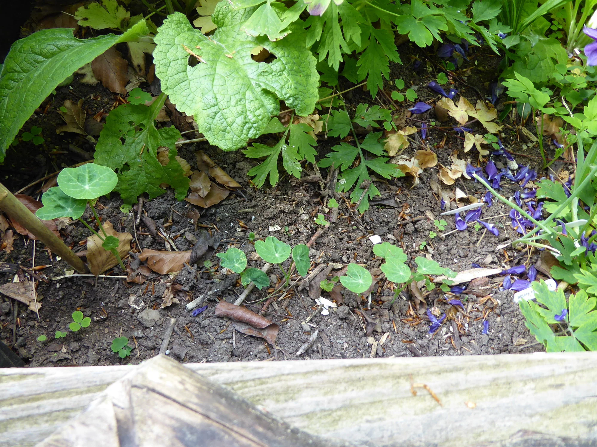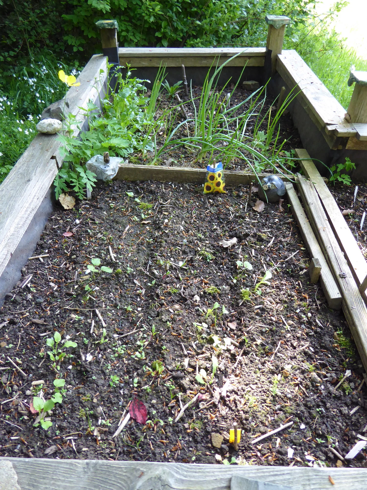 in der Küche gefundenen Dillsamen übers Hochbeet verteilt