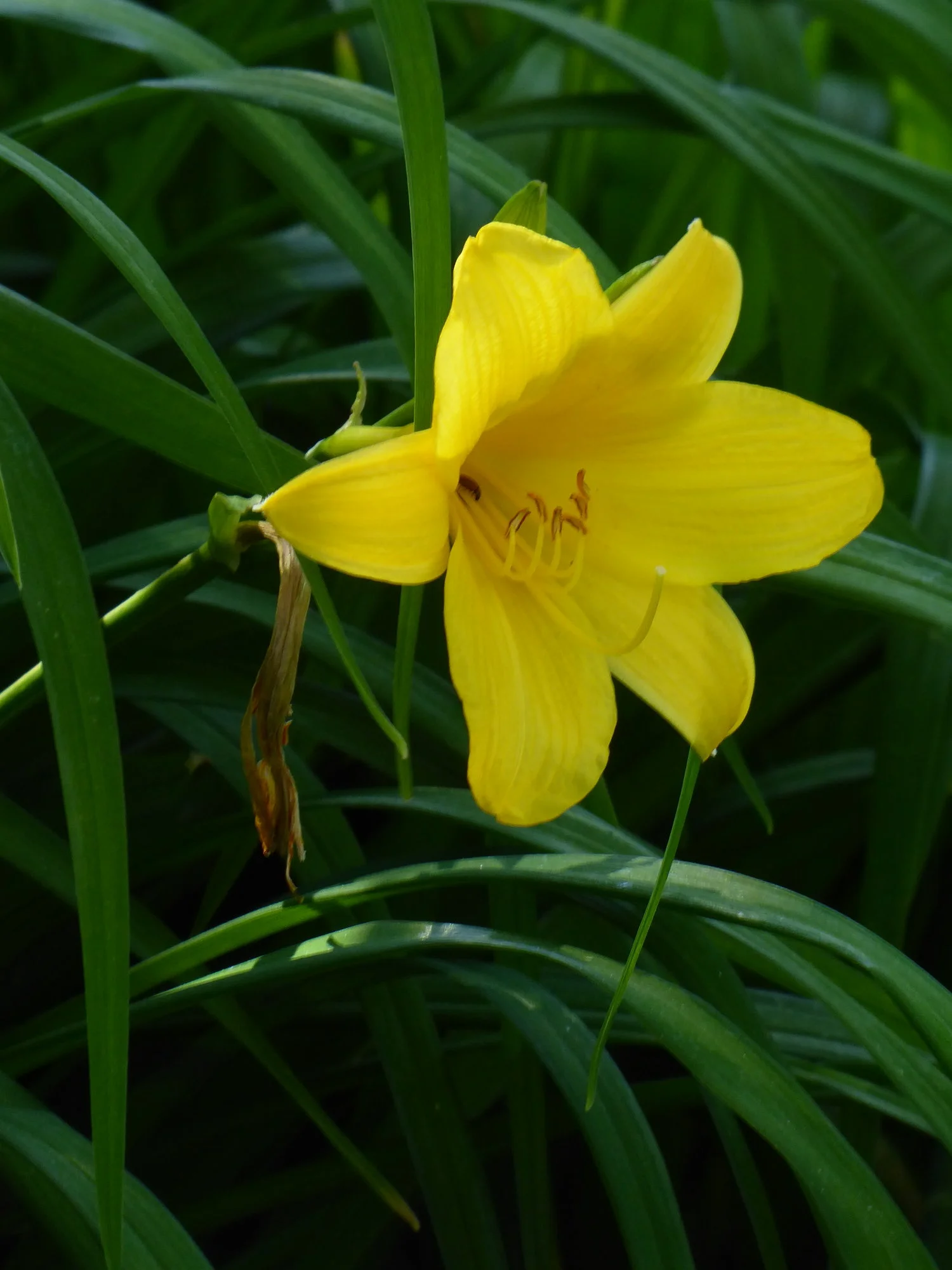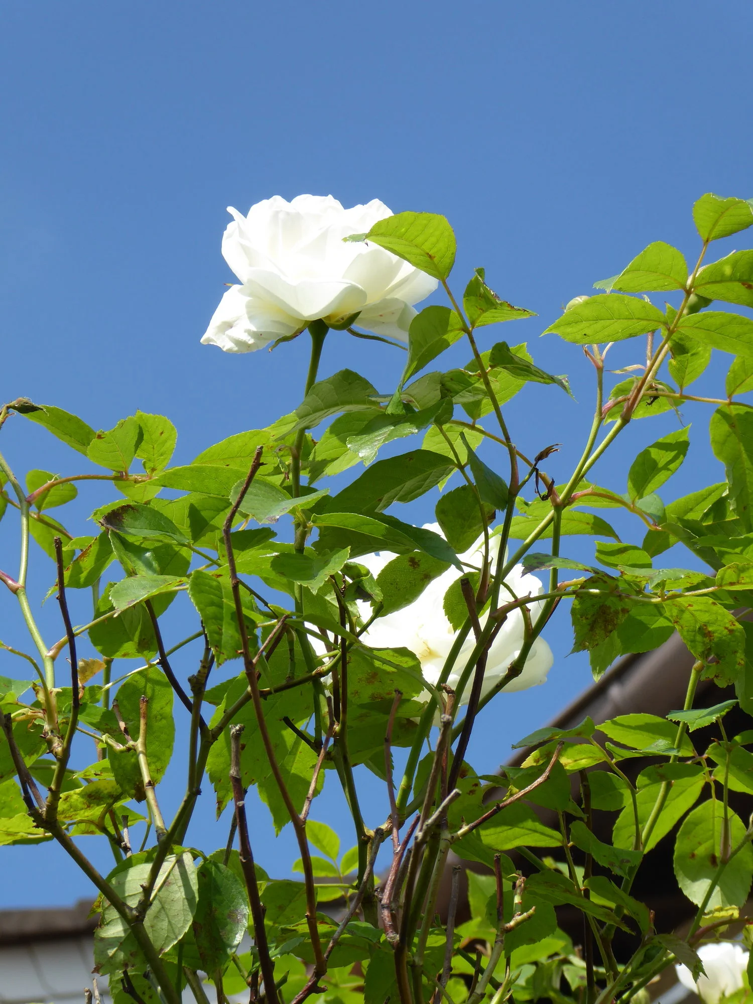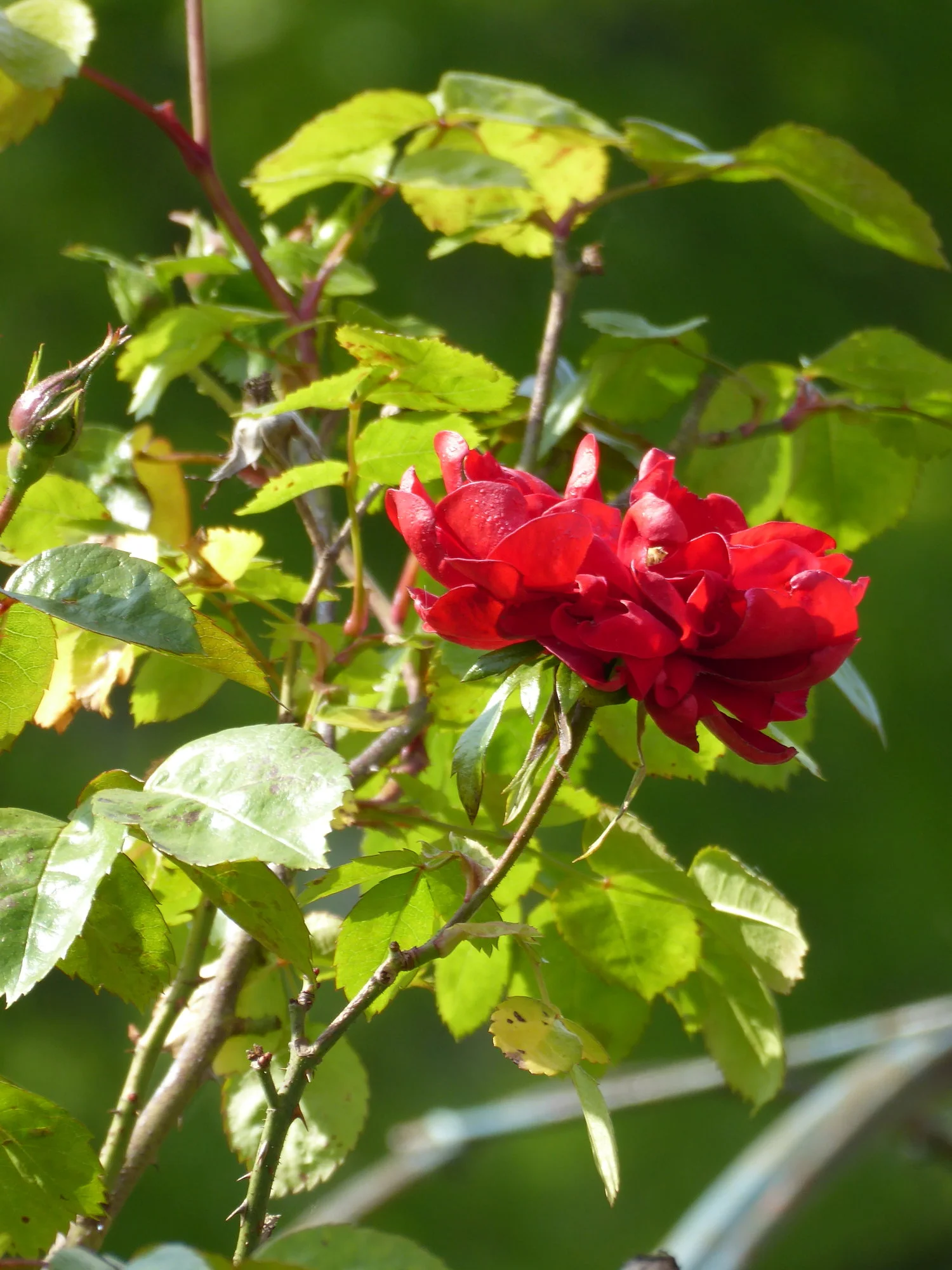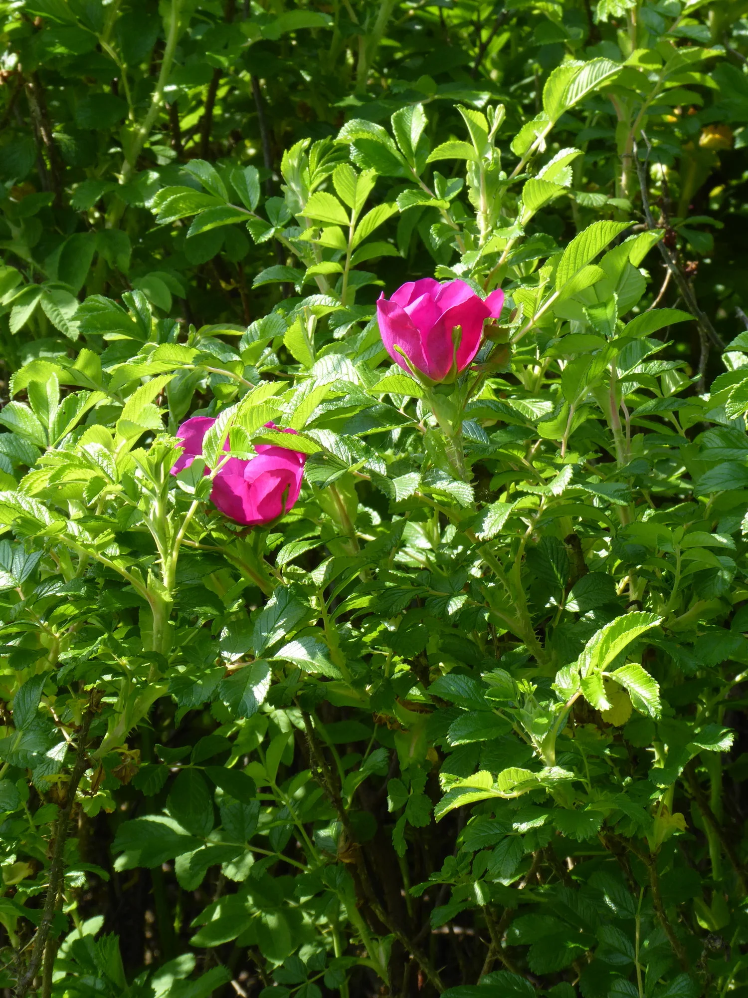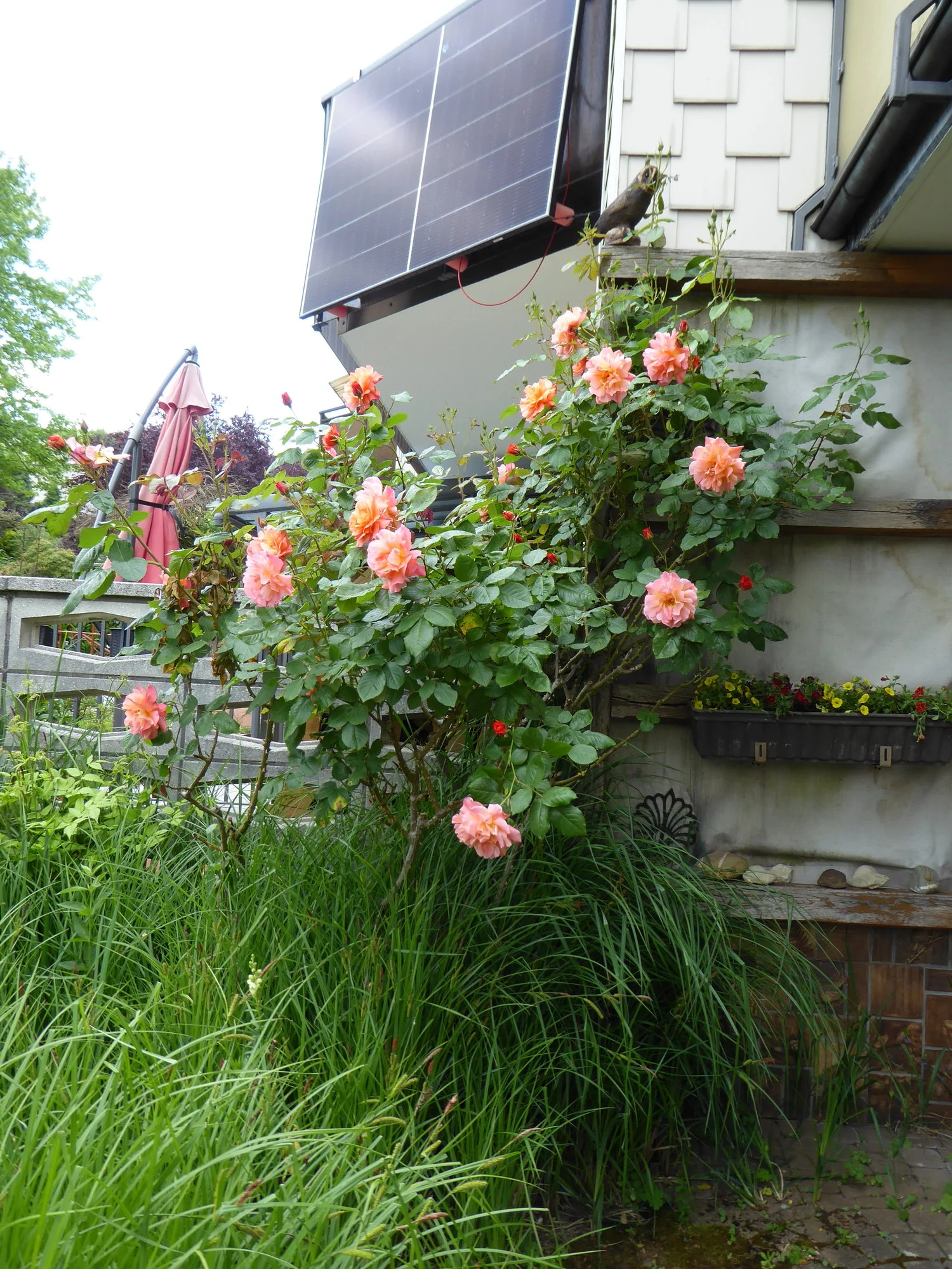 Ich habe viel Zeit verbracht, aus diesem Gewühl eine schwarze Johannisbeere freizulegen. Gut eine Schubkarre voll Brennnesseln und Brombeerranken habe ich gezogen, jetzt schaut die Johannisbeere, die sogar tapfer Beeren angesetzt hat, wieder raus.