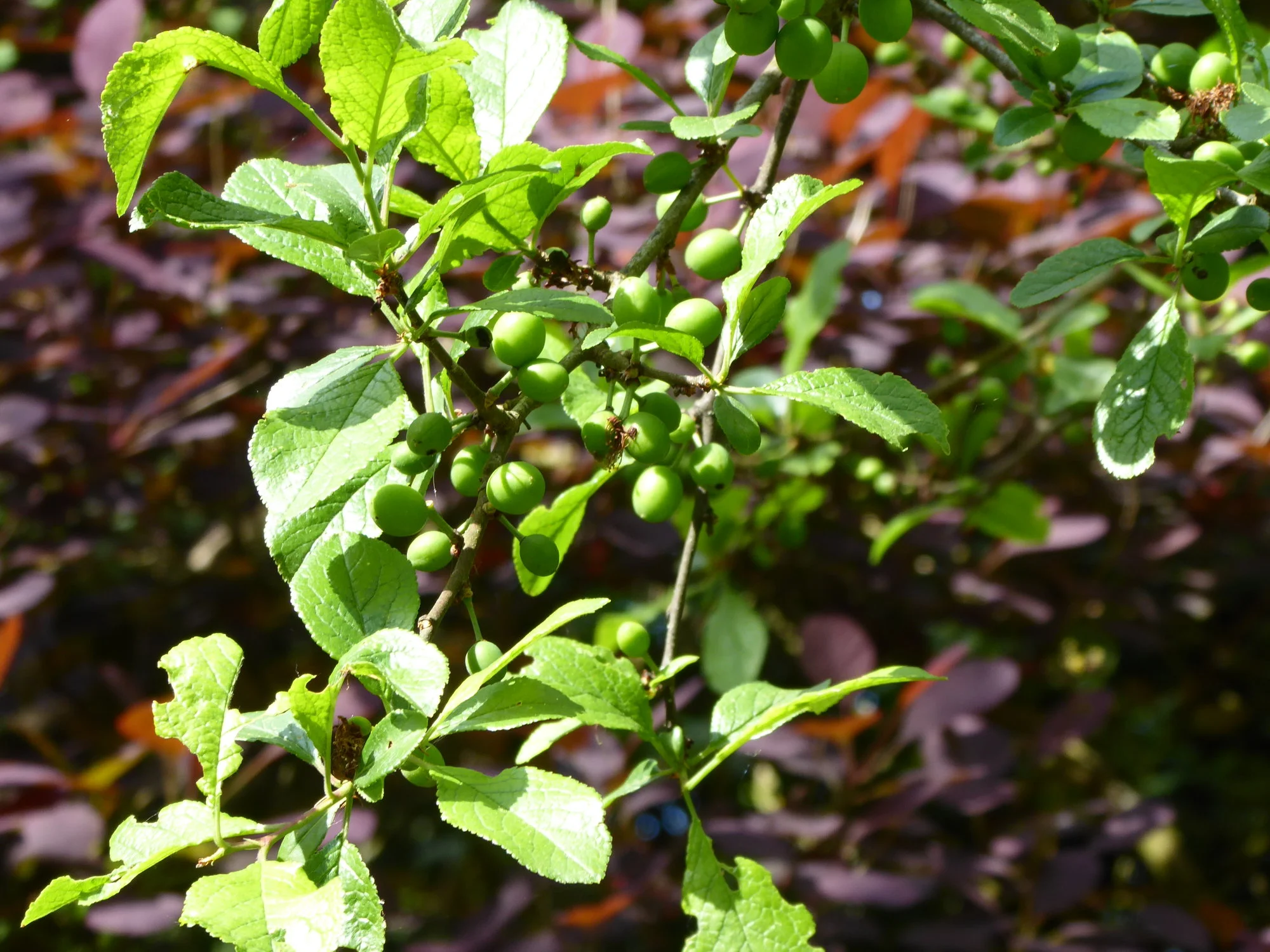Die Krete hat dieses Jahr toll angesetzt, das ist eine Pflaumen-Verwandte. Mal sehen, was aus den Früchten wird, wenn die Vögel nicht schneller sind.