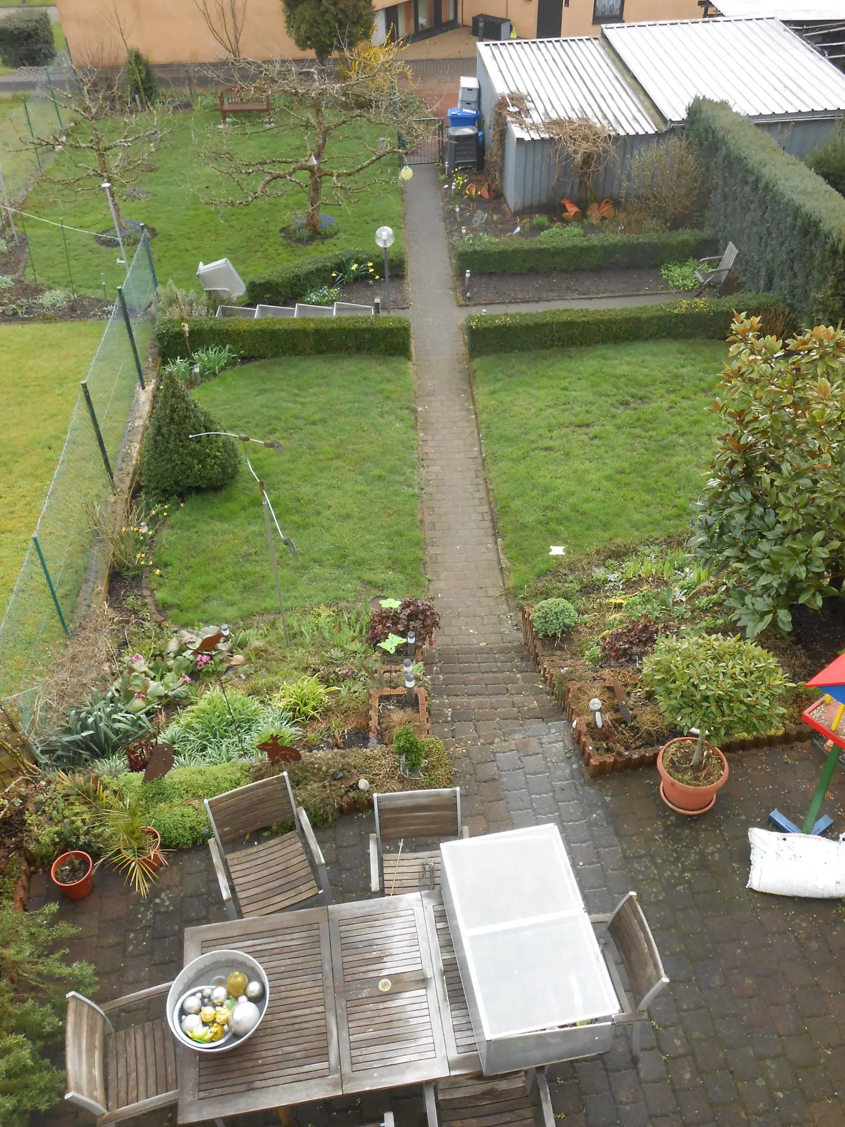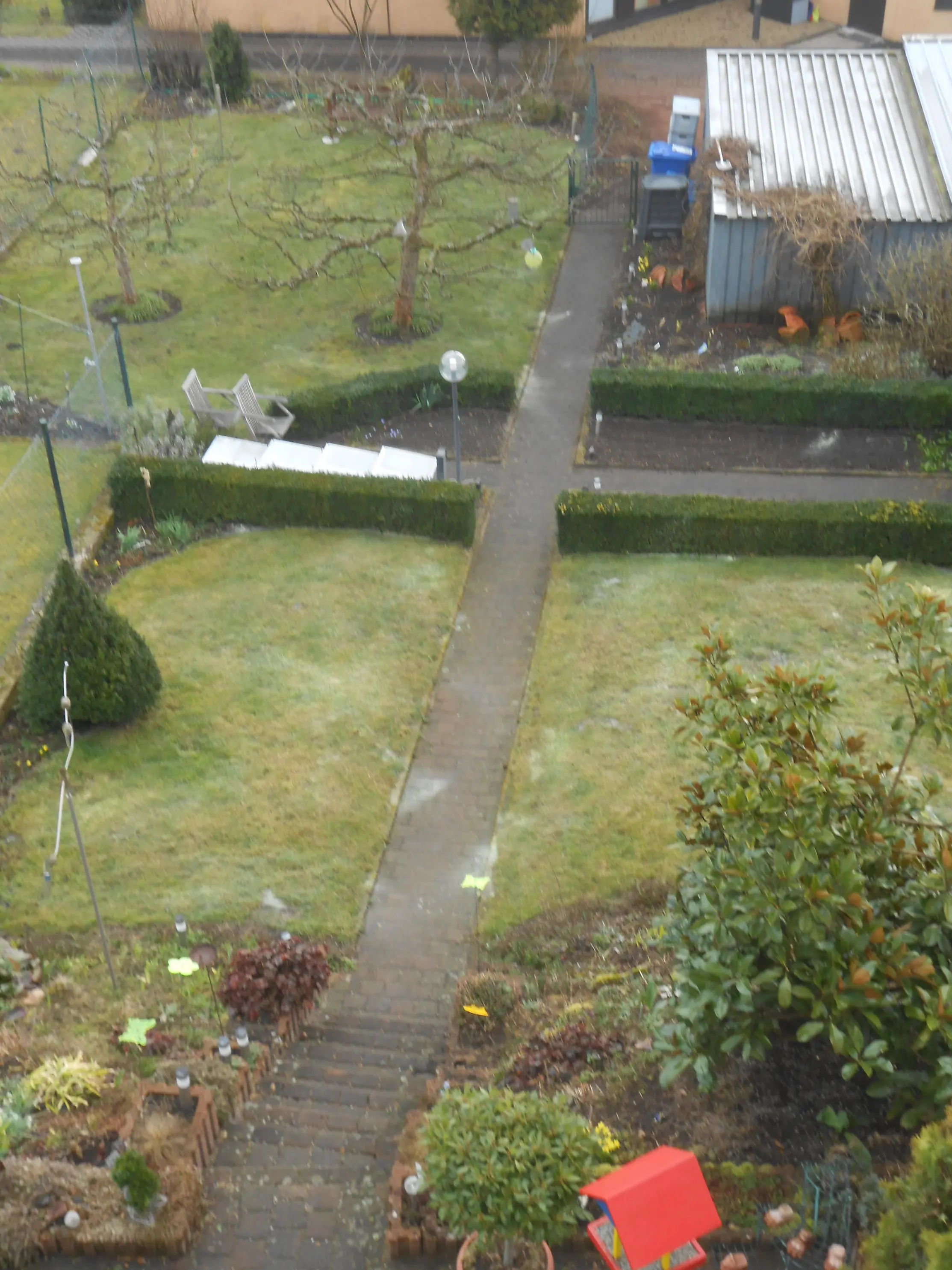 • Habe eben auf den Eisendünger noch das Zeug von Thomas Phillips gestreut. Es soll die ganze nächste Woche regnen. Ideal. Das Vergleichsfoto folgt.