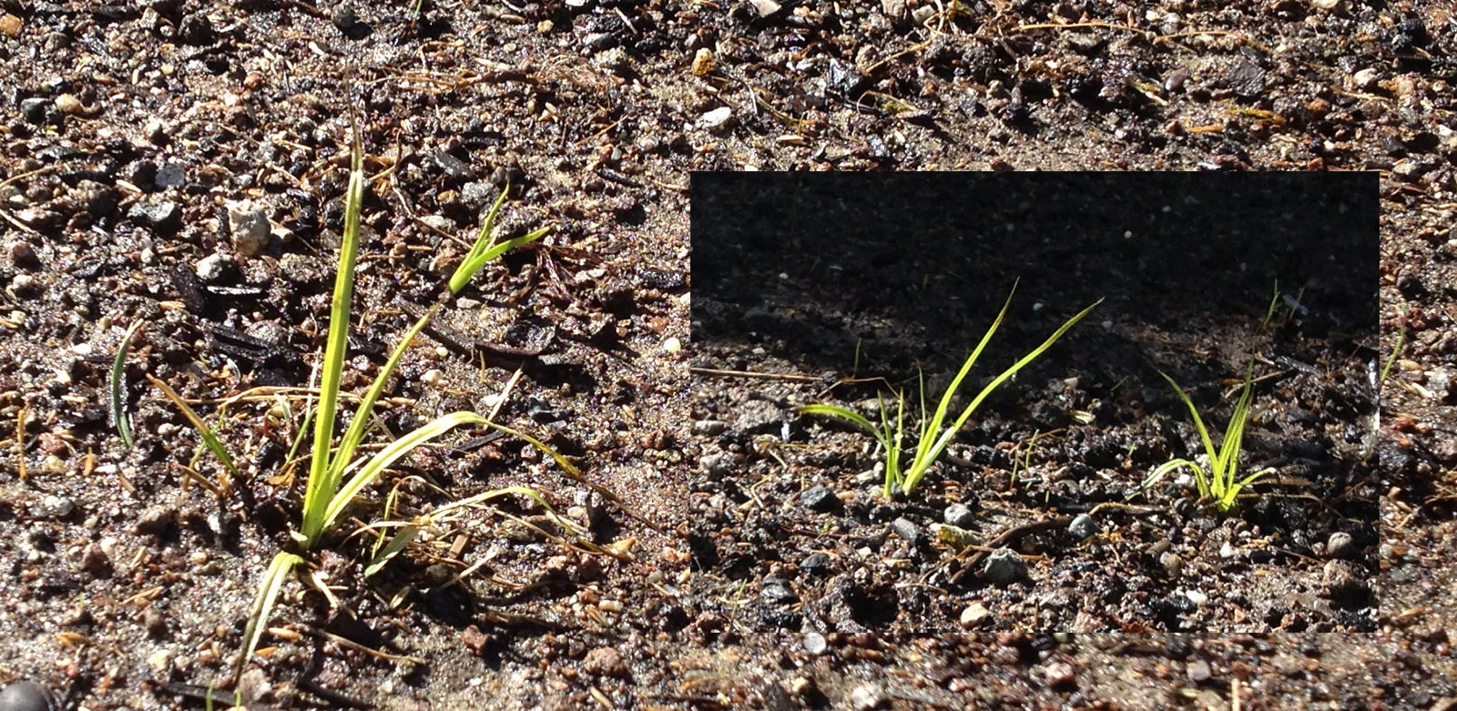 Nönö, es ist schon Gras dabei, siehe die Fotos aus dem Post darober. Das was übrig geblieben ist von letztem Sonntag hat angefangen aufzugehen. Siehe eben Fotos oben bzw. in diesem Postin in Foto 2 links ganz fein und klein.