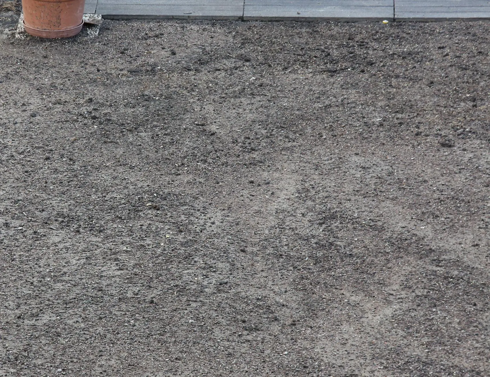 Noch ein Followup. Mit ein wenig rumrechnen und so sieht es gar nicht mal mehr so brutal aus. Nur, auf der obersten Schicht sind jetzt ganz viele winzige Steinchen und kleiner Kiesel sichtbar, ich schätz mal der ganz feine Kompostanteil wurde weggewaschen und das hier blieb zurück. Irgendwie denk ich mir aber mit Rasen+Rasenfilz sollte es das gar nicht mal mehr so ausmachen, oder was denkt ihr? Zu schlecht, nochmal 1cm Komposterde drüber?