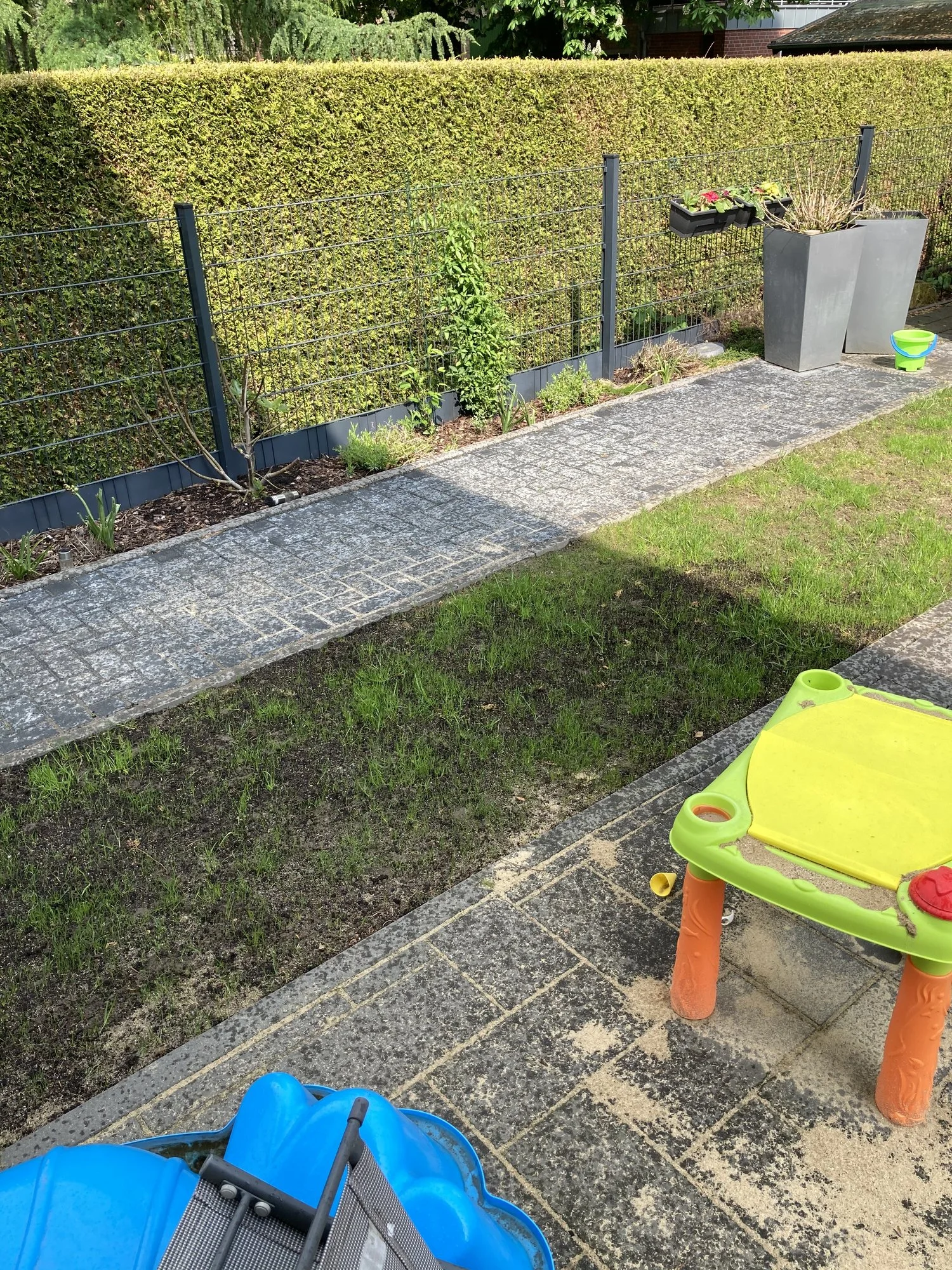 Jedenfalls habe ich mir dann mal einen Vertikutierer geliehen auf Zerstörung gestellt und alles in Teneriffa verwandelt. Unkraut entfernt, Restrasen soweit möglich aufgesammelt und entsorgt.