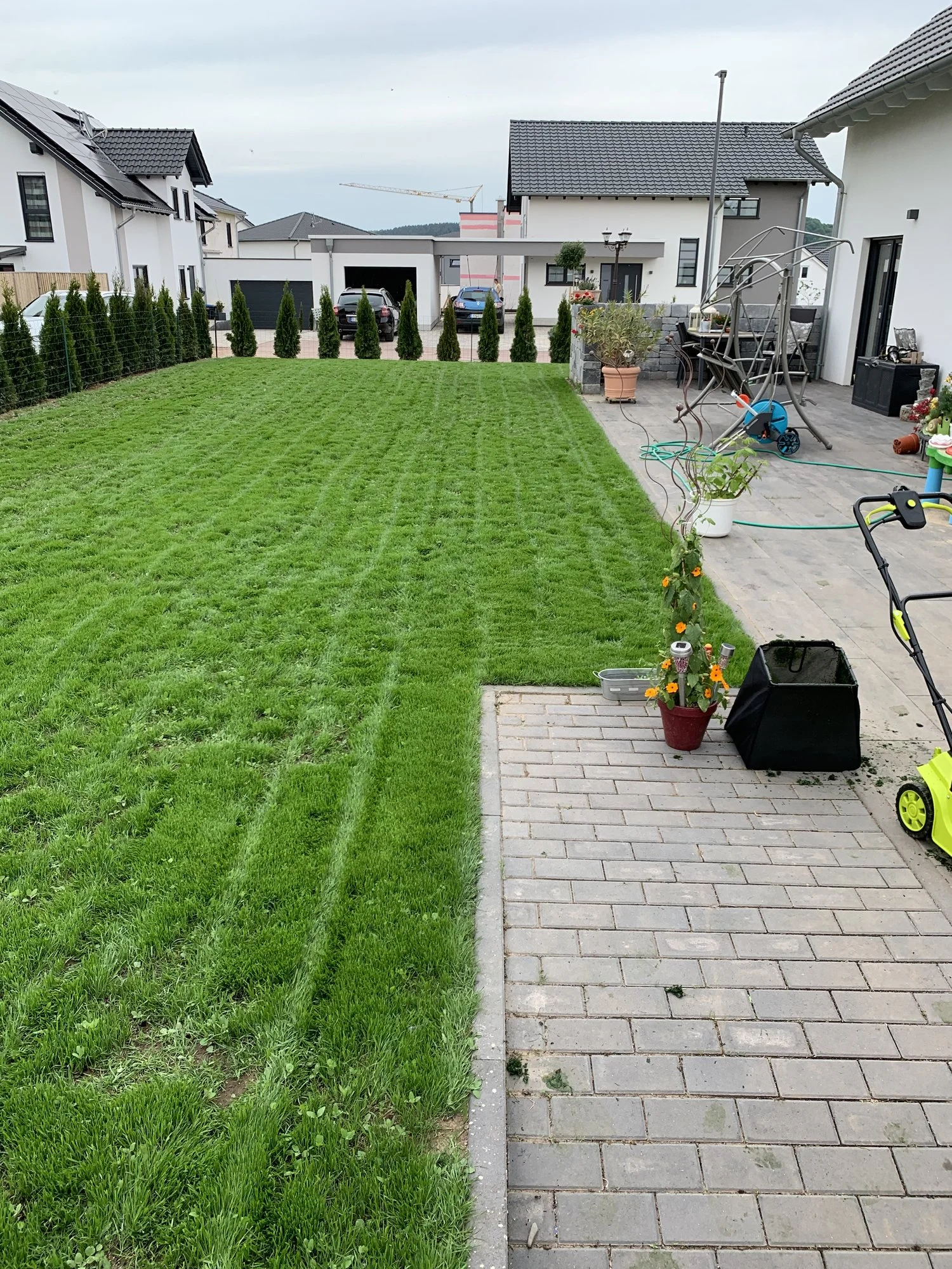 Der Weidelgras Rasen ist jetzt 4 Wochen alt und sieht wirklich gut aus bisweilen und ist entsprechend "dicht". Allerdings habe ich Sorge da Poa pratensis in entscheidenen Anteil NOCH fehlt das der Rasen nicht stabil genug ist auch wenn das bisherige Rasenbild wirklich gut aussieht. Bis auf diverse Lücken wie das anfangs so ist und Unkraut hier und da.