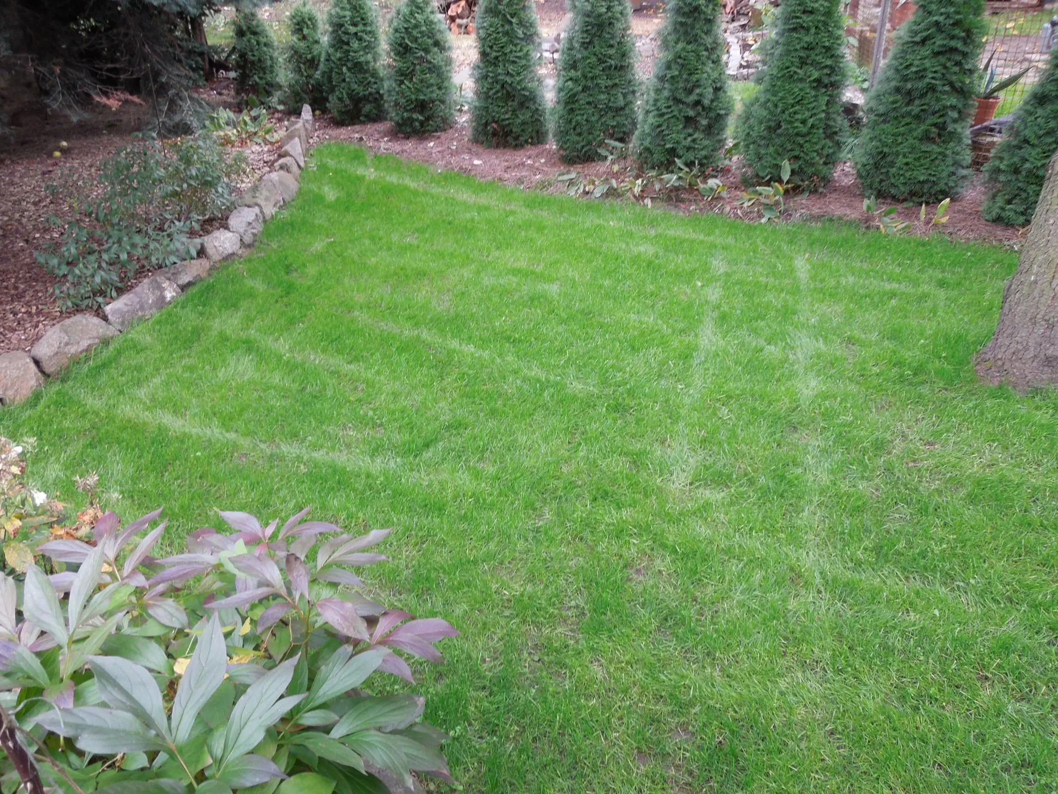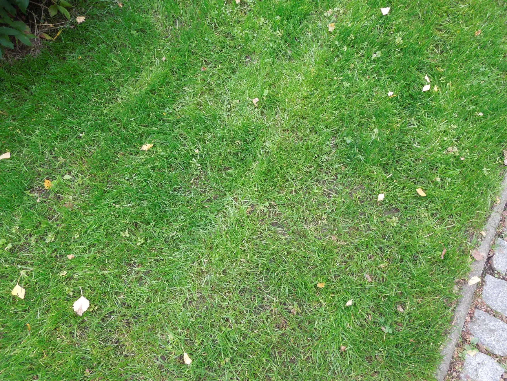Es gibt genau zwei Stellen, wo das graß schneller wächst als der Rest, vielleicht so je max. 20 cm groß (war auch vorm Düngen so), was kann das sein? Nicht wenn ich mir so'n Ungras reingeholt hab. Sieht man auf dem Foto, wo ich nahe nur das Gras fotografiert habe.