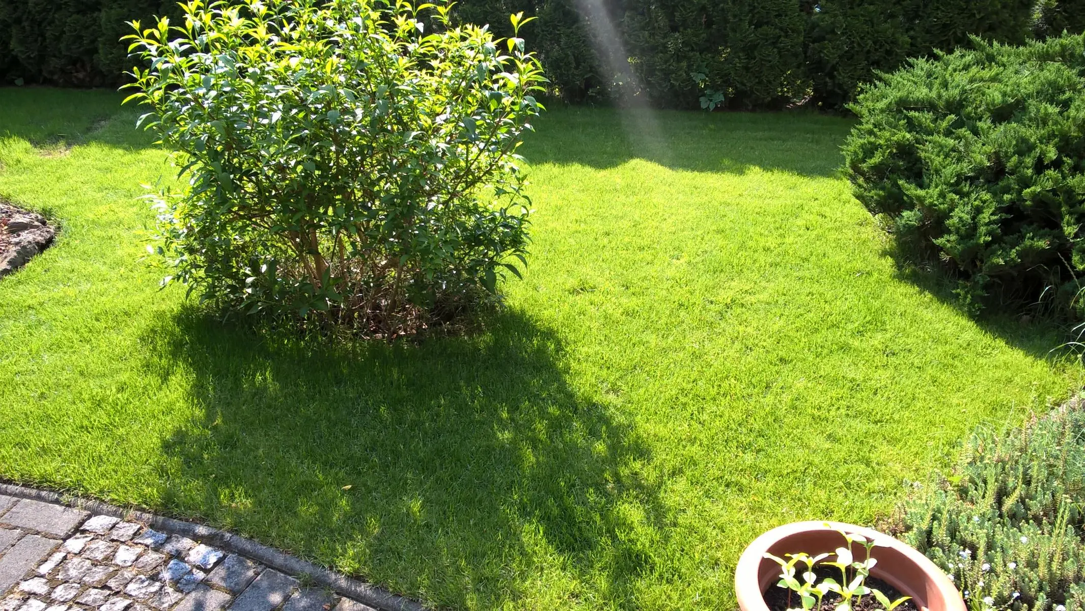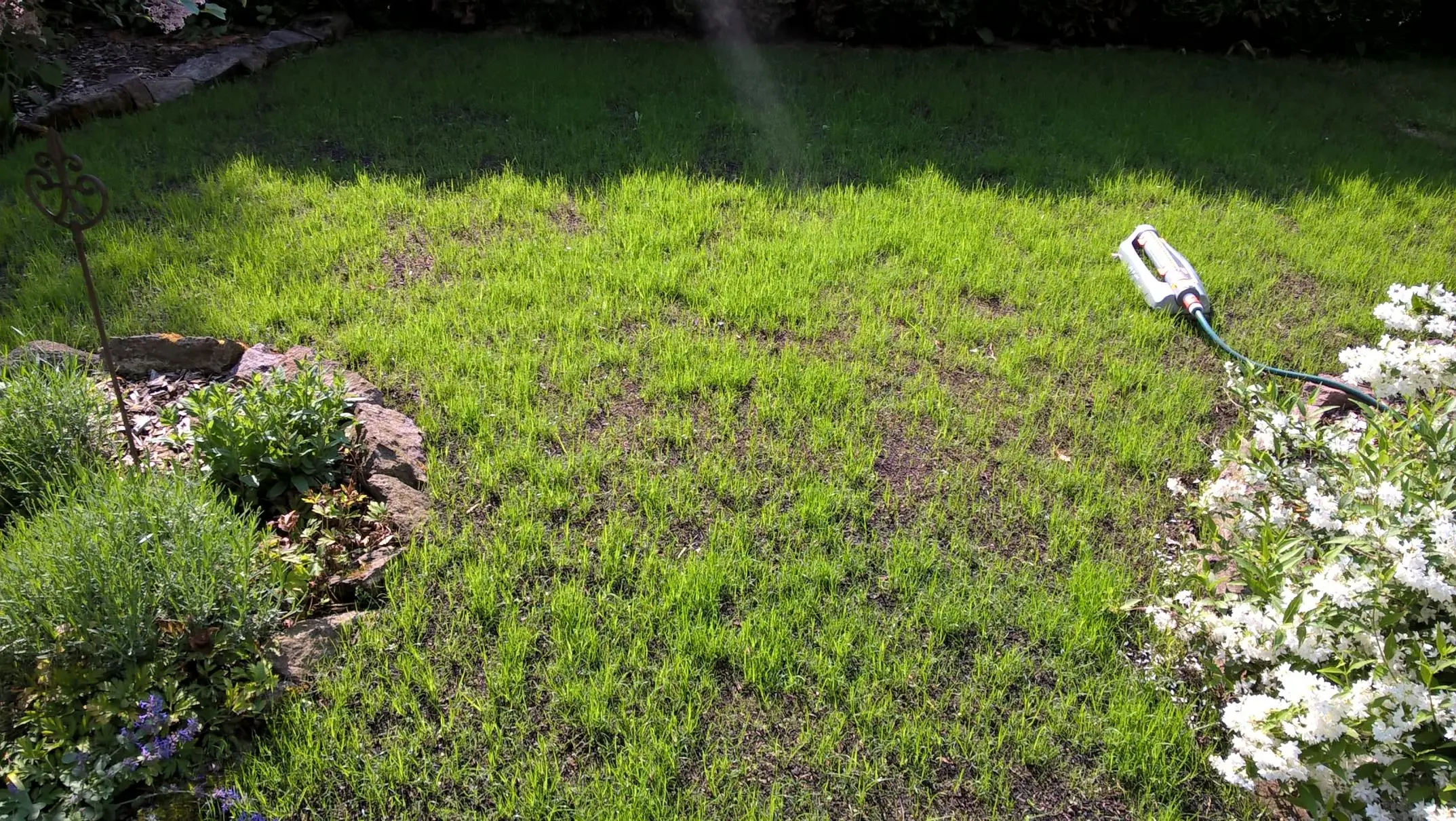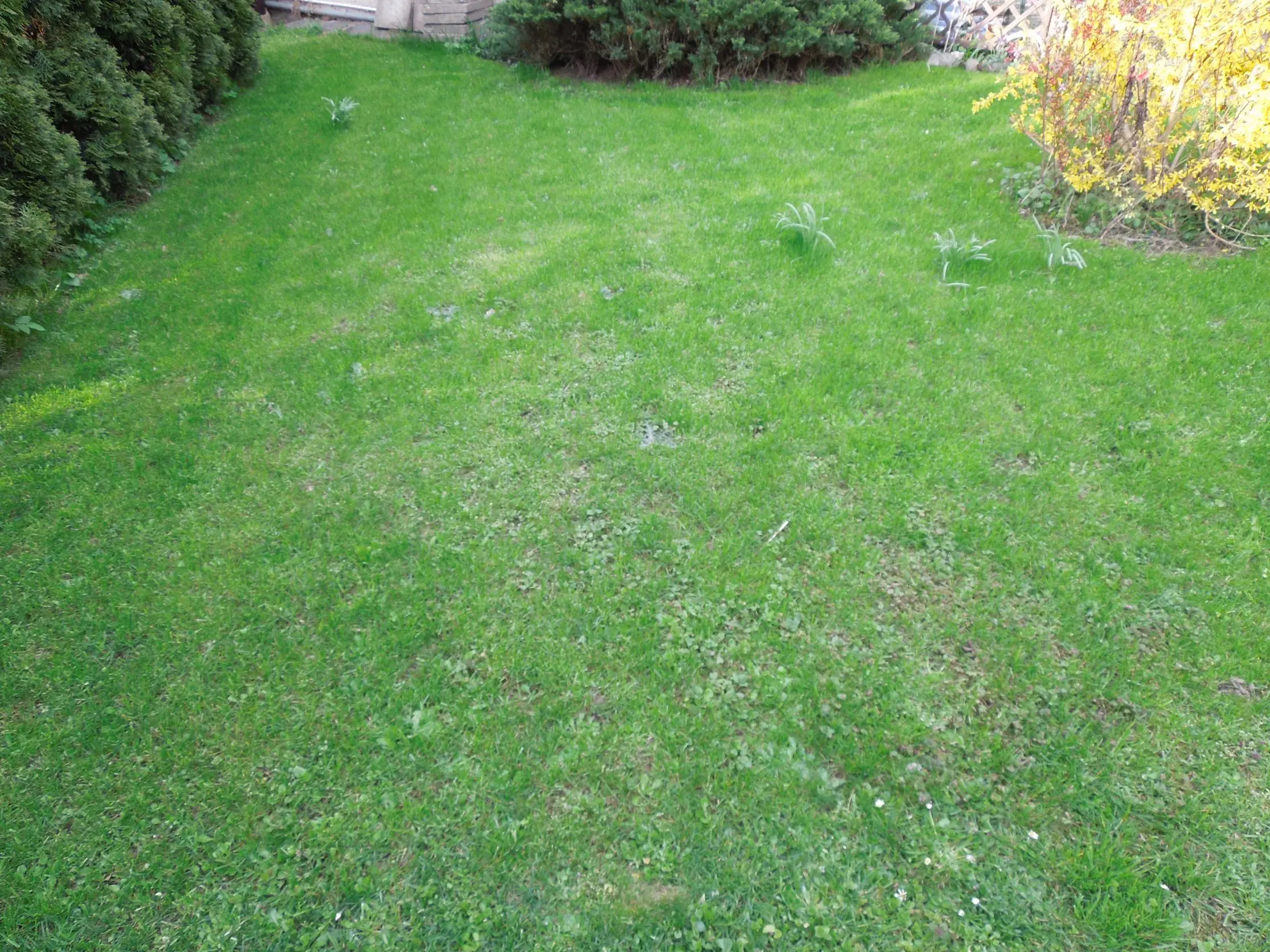 Hab jetzt mittlerweile vor einer Woche gedüngt und schon zweimal gemäht, sieht jetzt schon mal grüner aus, als direkt nach dem Winter, nur ein paar Dinge fallen mir auf: