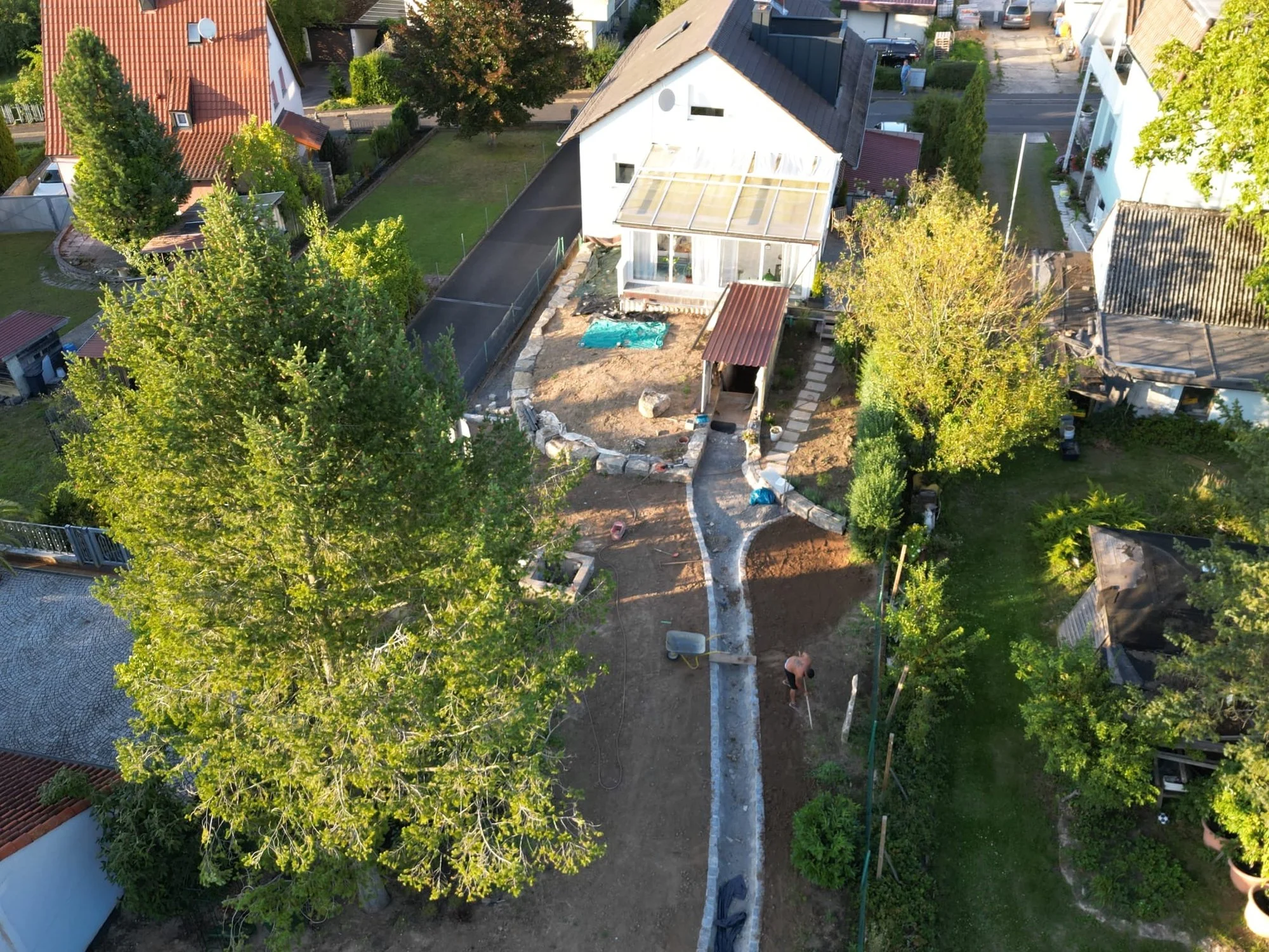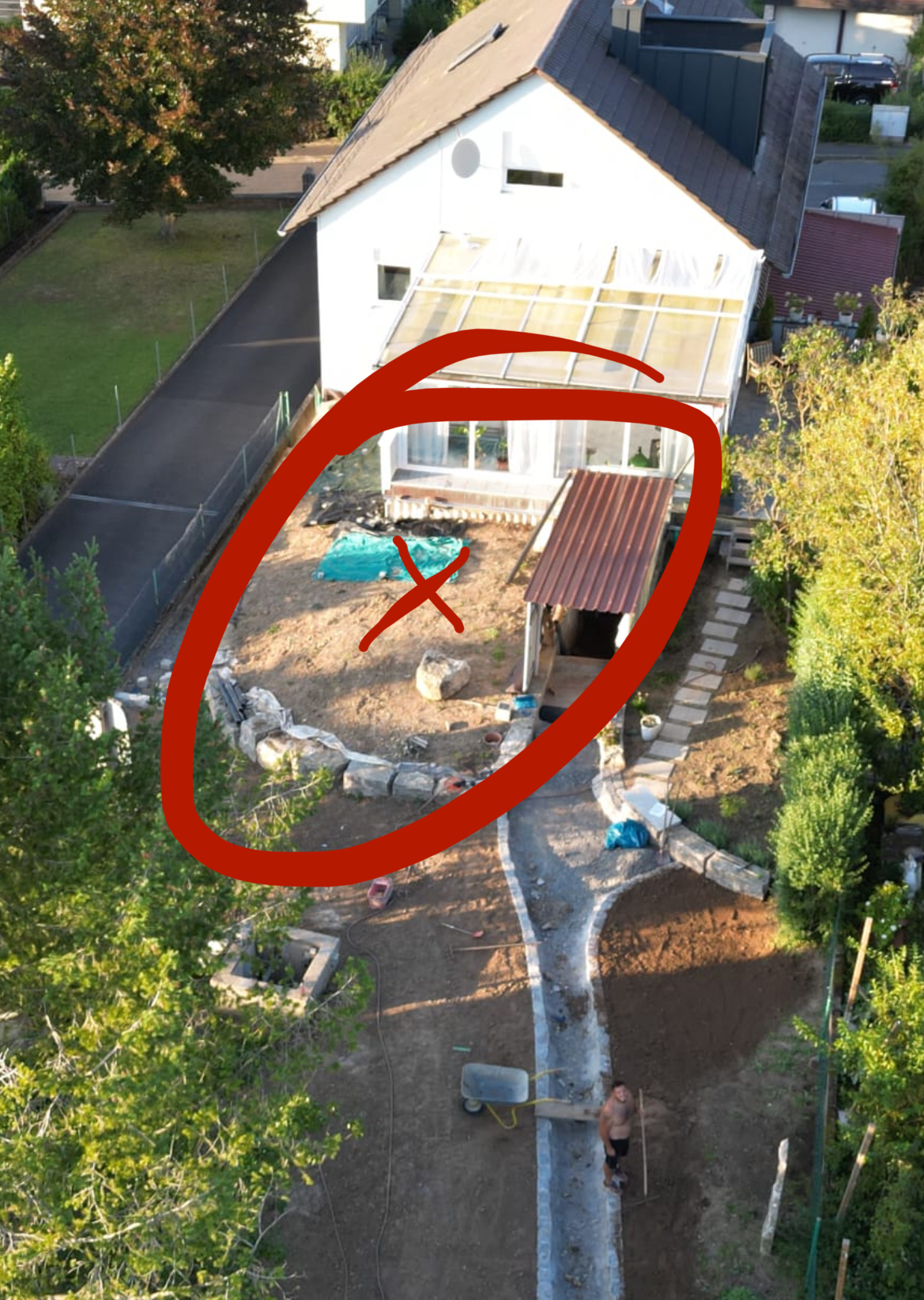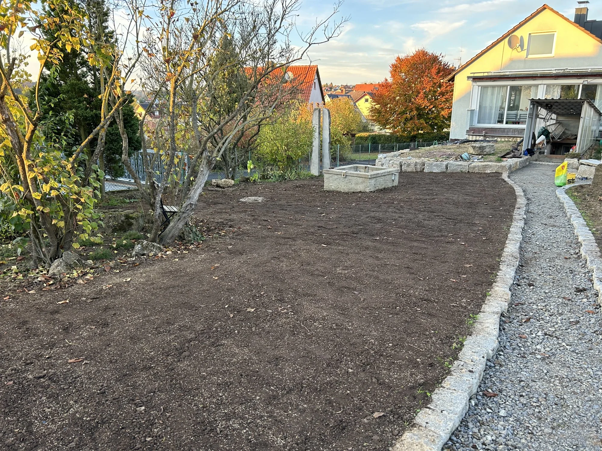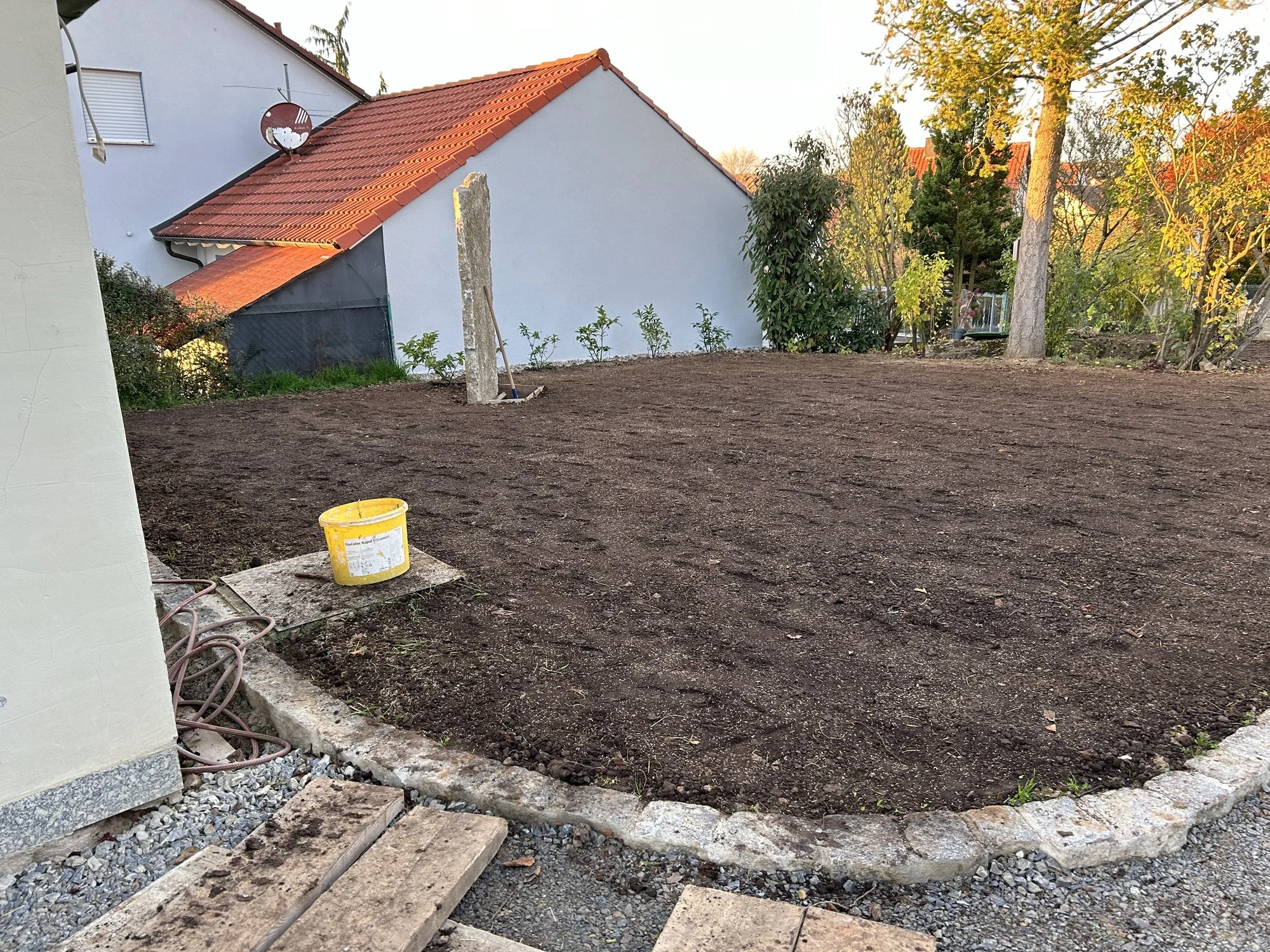 Gemüsegarten soll angelegt werden, und auf der Fläche welche später rasen sein soll aufarbeiten.