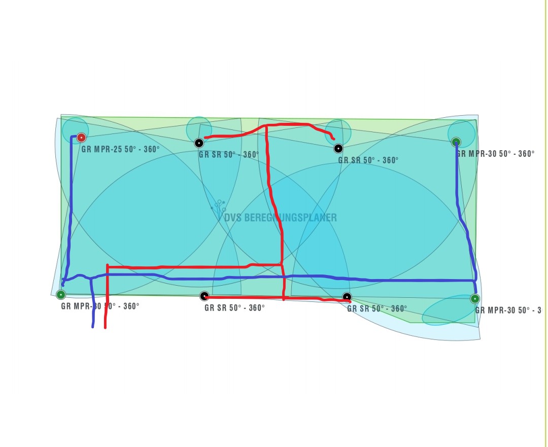 Ok, dann ist es möglich die 180⁰ und 90⁰ Regner zusammen zu kombinieren, nur bei dem 180⁰ Regner müsste eine größere düse eingesetzt werden damit es gleichmäßig bewässert werden.Stell es dir wie ein Wasserschlauch vor. Du hast deine Wasserspritze in der Hand und schwenkst von rechts nach links. Die Menge Wasser ist gleich. Natürlich brauchst du bei 180° doppelt so lange wie nur bei 90°.