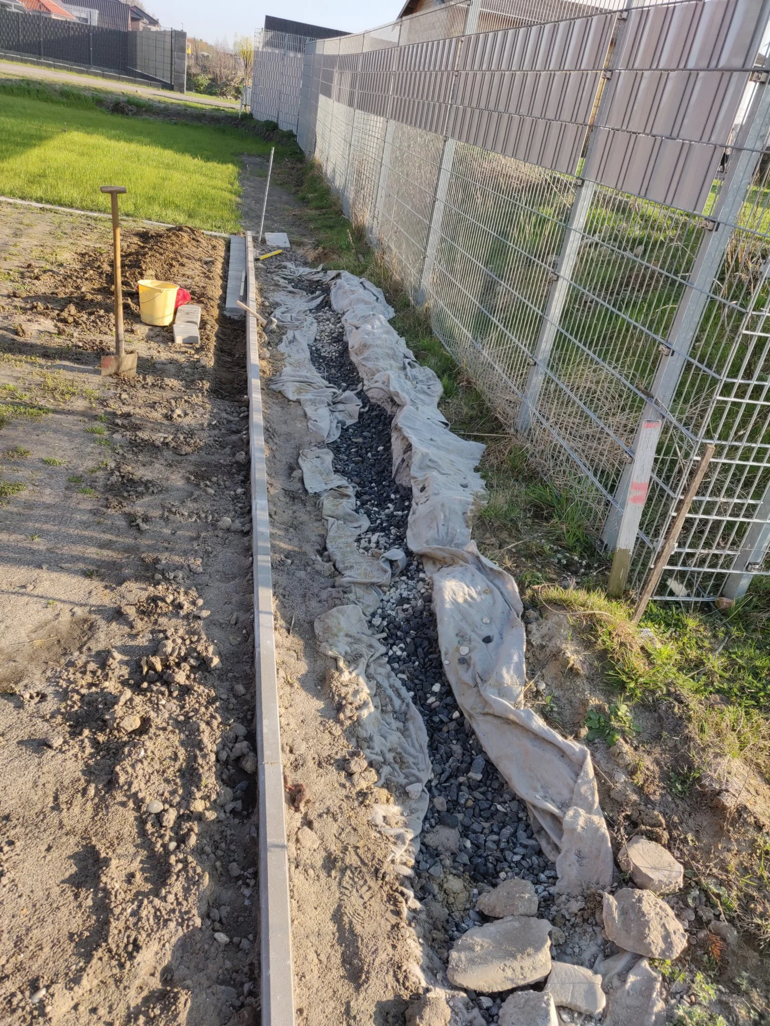 • WebBuddha, wenn ich das richtig sehe, legst Du Rasenkanntensteine du die hecke soll hinter die Drainage. Auf der Drainage macht ja keinen Sinn, den dann erfüllt die Ihren Zweck nicht mehr.