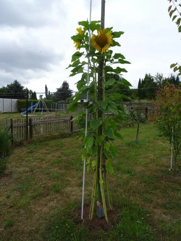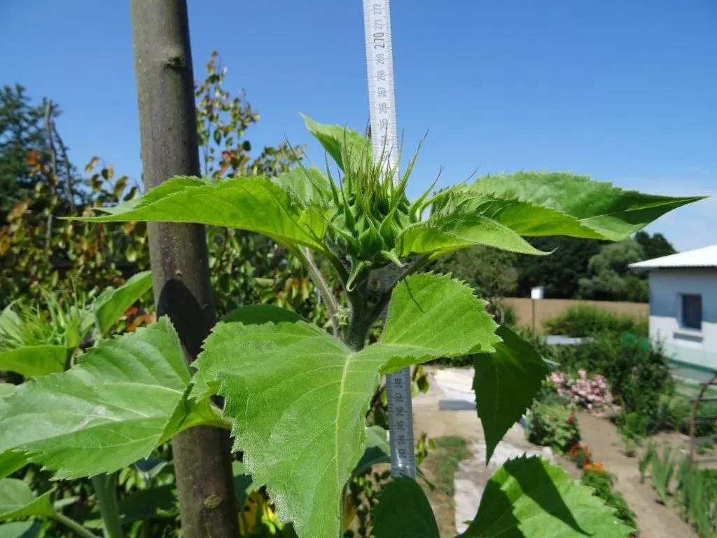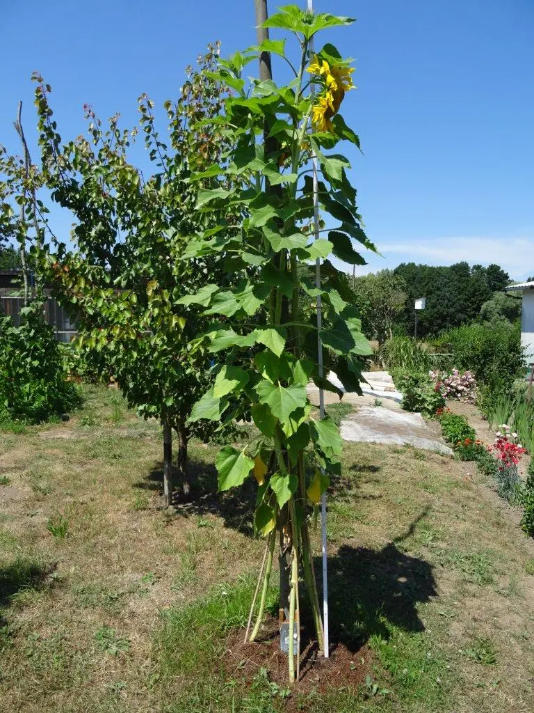 Die größte Sonnenblume im Kübel hat heute 258 cm erreicht.