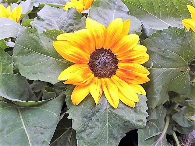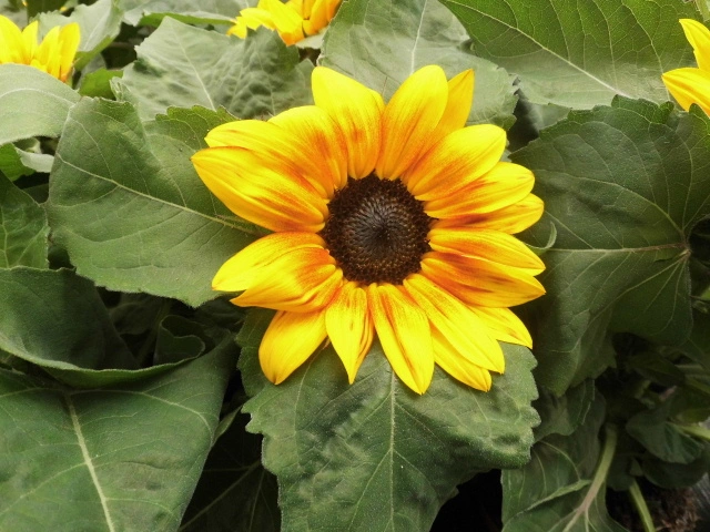 Kennt jemand kleinwüchsige Sonnenblumensorten für den Balkonkasten, die eine ähnlich schöne Blüte haben wie meine große? Das könnte ich mir nämlich für nächstes Jahr ganz toll vorstellen, so einen Balkonkasten voller solcher Blüten.