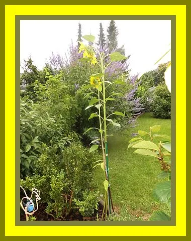 Habe meinen persönlichen Rekord aufgestellt. Die größte meiner Sonnenblumen ist jetzt bei 3,10 m angelangt. Die anderen 5 - 6 sind bei ca. 2,9 m - 3 m angelangt. Immmerhin 10 cm mehr als voriges Jahr. Für nächstes Jahr habe ich mir schon eine neue Taktik ausgesucht. Ich will so eine Art " Terra Preta "- Bodenmischung herstellen, die mindestens 50 cm stark auf dem Beet liegen soll. Mal sehen ob ich damit mehr Erfolg habe.