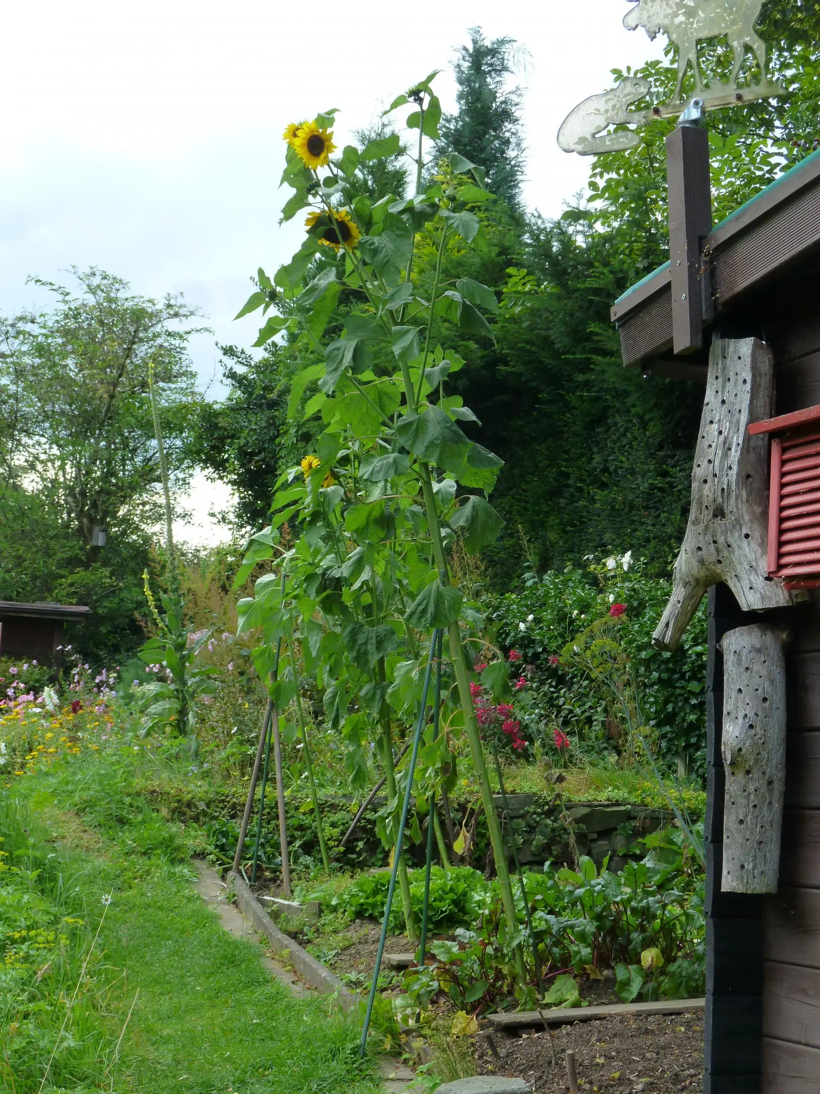 Hier kommt mein Update. Meine Kleine Sonnenblume mißt jetzt 1,40 m und die Hauptblüte blüht. Weitere kleine Blüten warten auf später und werden mich hoffendlich noch lange erfreuen.