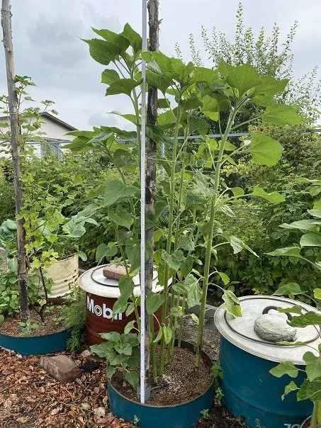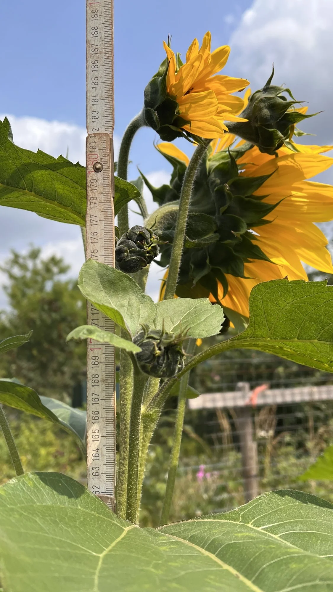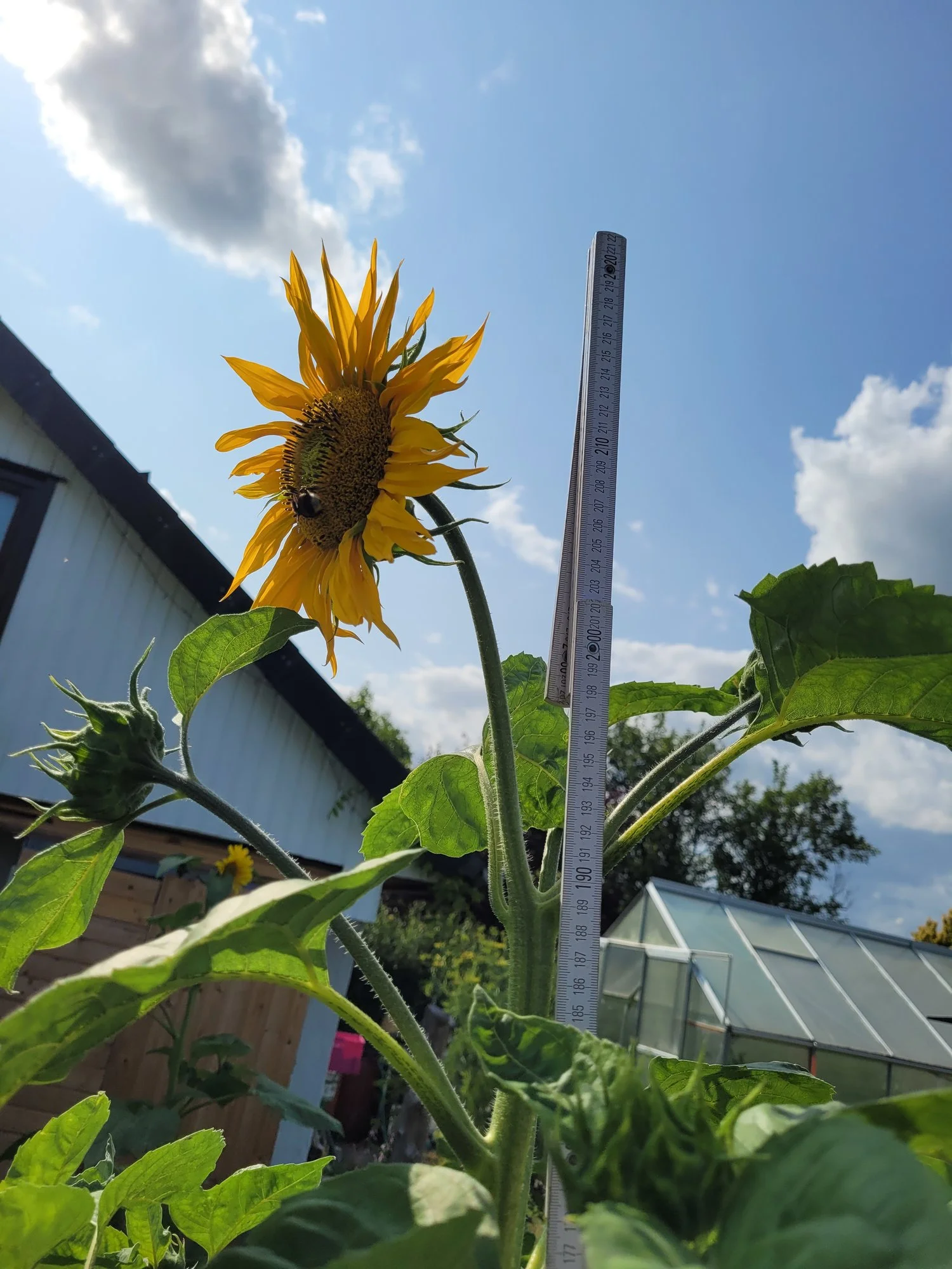 Ich habe dieses Jahr kein Glück mit Sonnenblumen. Nur ein paar wild gewachsene kleine im Garten - die sind toll! SebDob: 250 cm