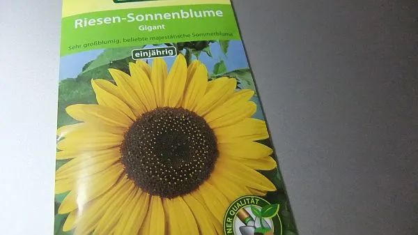 Heute habe ich ein Samentütchen erwischt, die Sonneblume ist großblumig.
