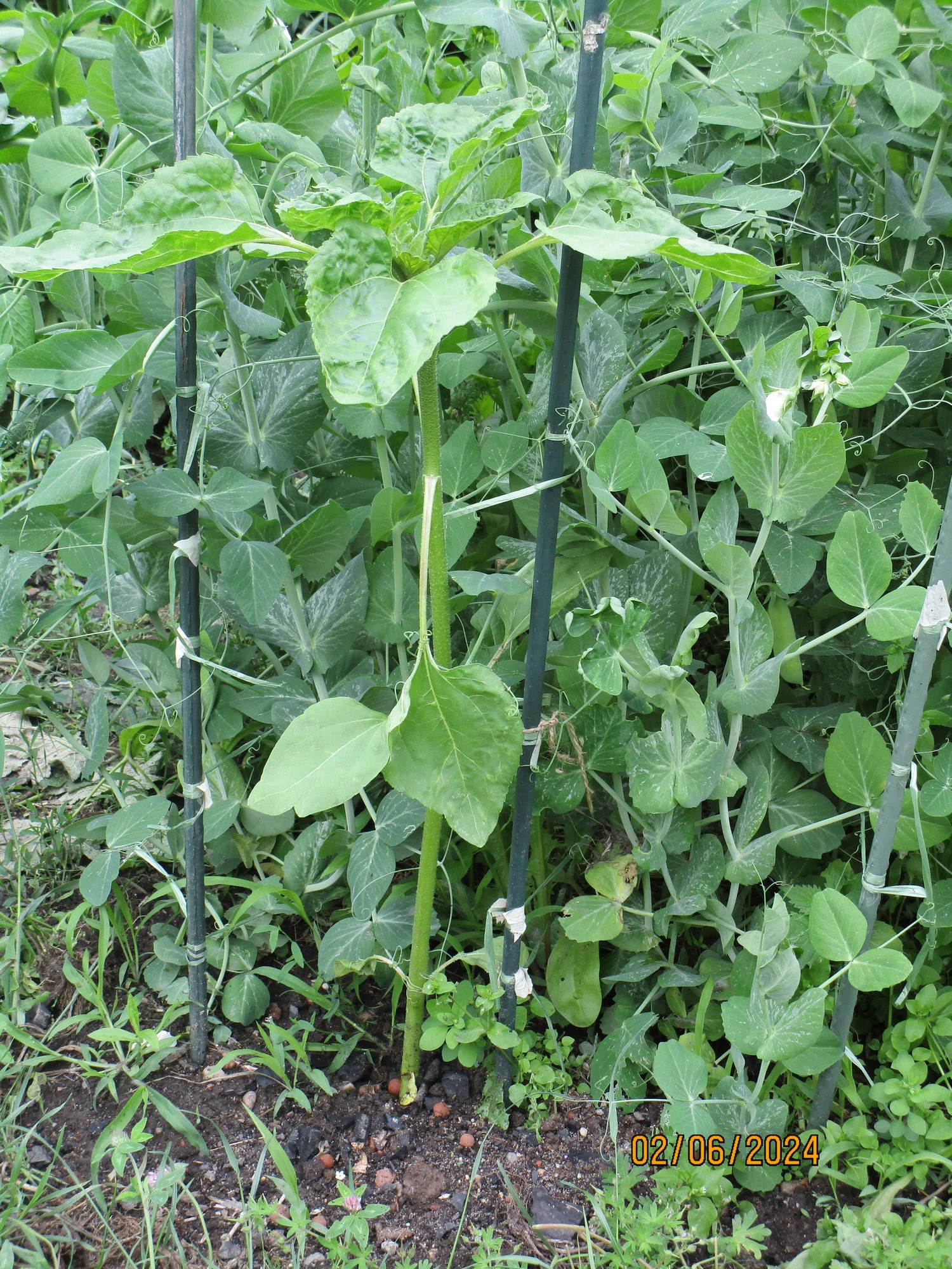 Meine versteckte Sonnenblume bei den Markerbsten hat auch zugelegt. Sie ist mittlerweile 70 cm.hoch. Ich bin ja gespannt,was aus der wird, wenn ich alle Erbsen für die nächste Frucht entfernt habe.