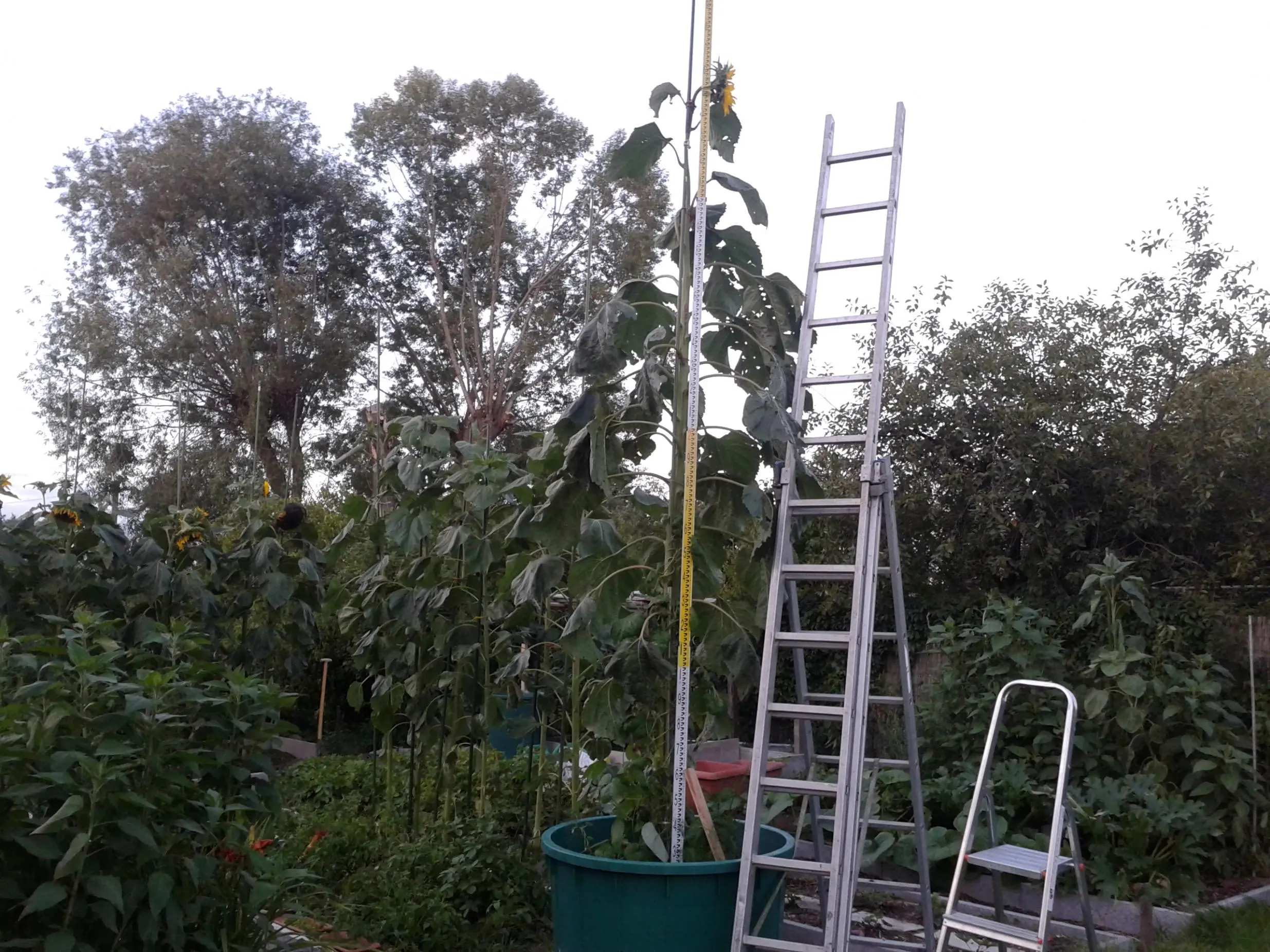 Hatte zwar mal einen Sturmschutz (angebracht, nachdem das bis dato unter einem Meter große Blümchen nach einem Gewitter im 45 Grad- Winkel stand) aber der war längst ausgewachsen/zu klein.