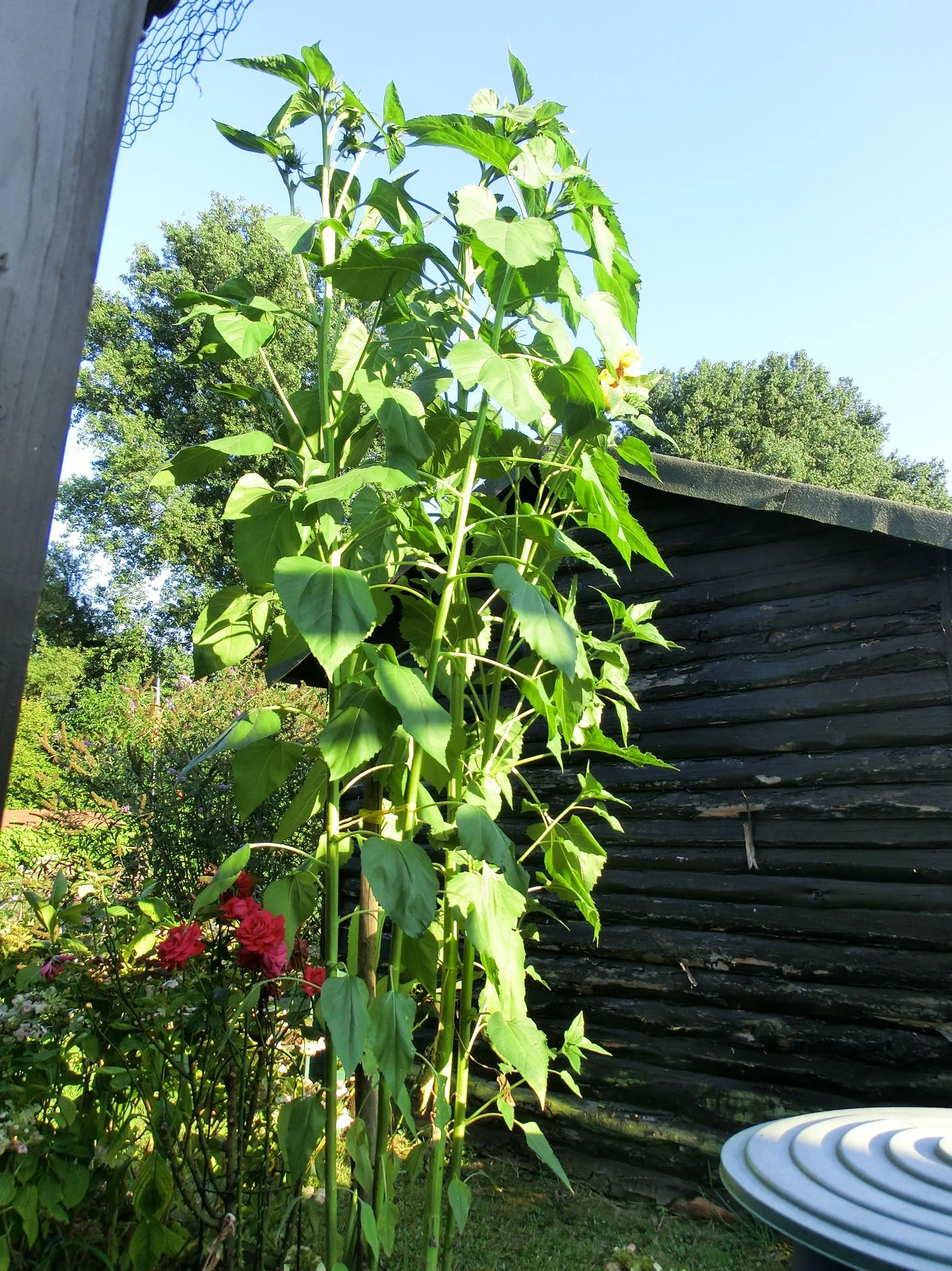 ...nee , da versteckt sich niemand, aber die Sonnenblumen wachsen genau in der Ecke, wo sich die Gartenzäune zu den Nachbarn befinden....:o und ohne deren Erlaubnis....
