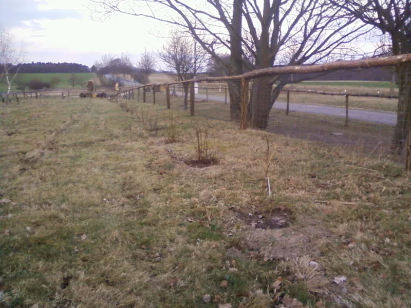Auf den Fotos ist auch zu sehen, dass wir eine neue Hecke gepflanzt haben. 64 neue Büsche. Die Vöglein werden sich hoffentlich freuen. Gepflanzt haben wir: Sanddorn, Salweide, Kornelkirsche, Bauernjasmin, Weigelie, Schmetterlingsflieder, Winterduft-Heckenkirsche, Duftschneeball, Zierjohannisbeere, Felsenbirne, 7-Söhne-des-Himmels-Strauch, Kolkwitzie, Prachtspiere etc.