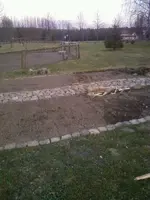 Nun kommt eine kleine Rundschau durch meine Blumenbeete. Und unser neustes Projekt ist ebenfalls zu sehen. GG baut einen Weg aus Feldsteinen und links und rechts davon entstehen - wie solls auch anders sein - zwei neue Beete. :grins: