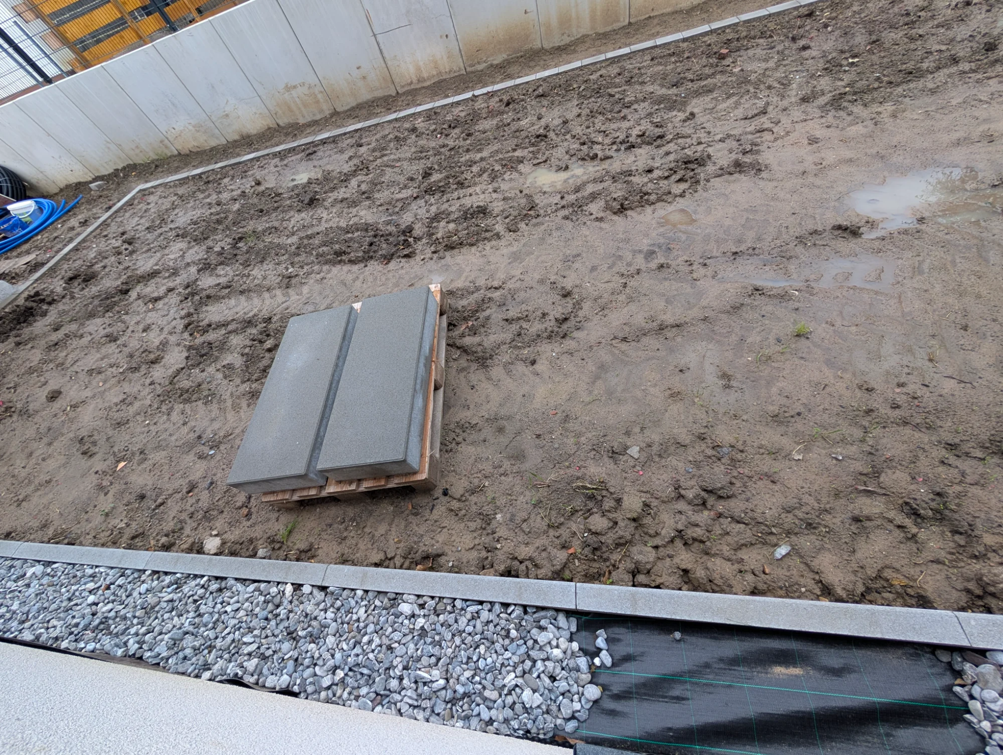 Mittlerweile ist unsere Einfahrt gepflastert. Da wurde der Recycling davor entfernt.